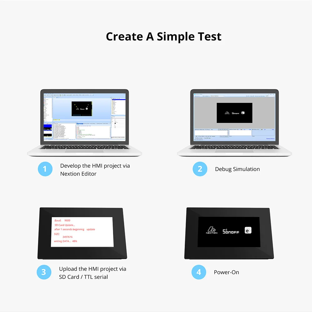 당신은 무료 최신 Nextion 편집기 소프트웨어 ver 0.58 이상을 통해 HMI GUI 프로젝트를 개발할 수 있습니다, 간편한 드래그 앤 드롭 구성 요소와 간단한 ASCII 텍스트 기반 지침은 HMI 프로젝트 개발 워크로드를 크게 줄입니다.