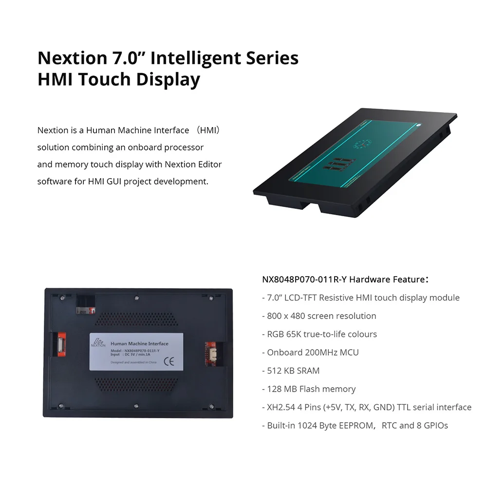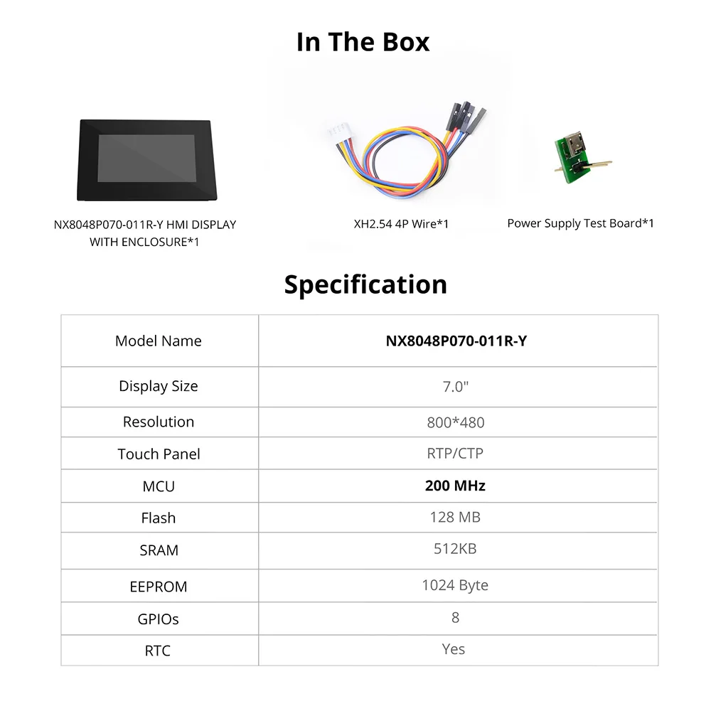 -모델: NX8048P070-011C-Y(HMI 지원 정전식 터치 디스플레이) 및 NX8048P070-011R-Y((HMI 저항 터치 디스플레이)