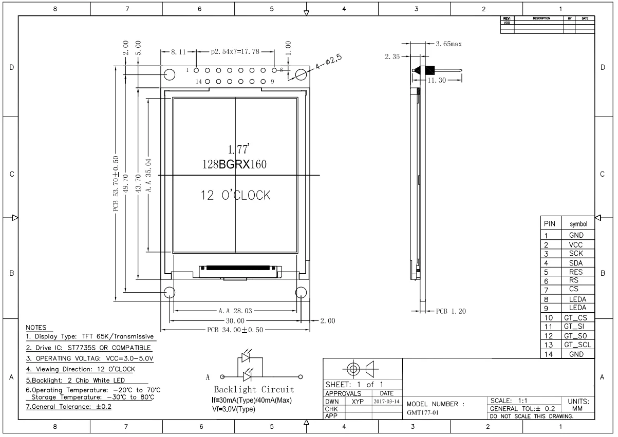 ● TFT 전원 공급 장치: 화면 전원 공급 장치가 2.8-3.3V; 5V 를 사용하지 마십시오.