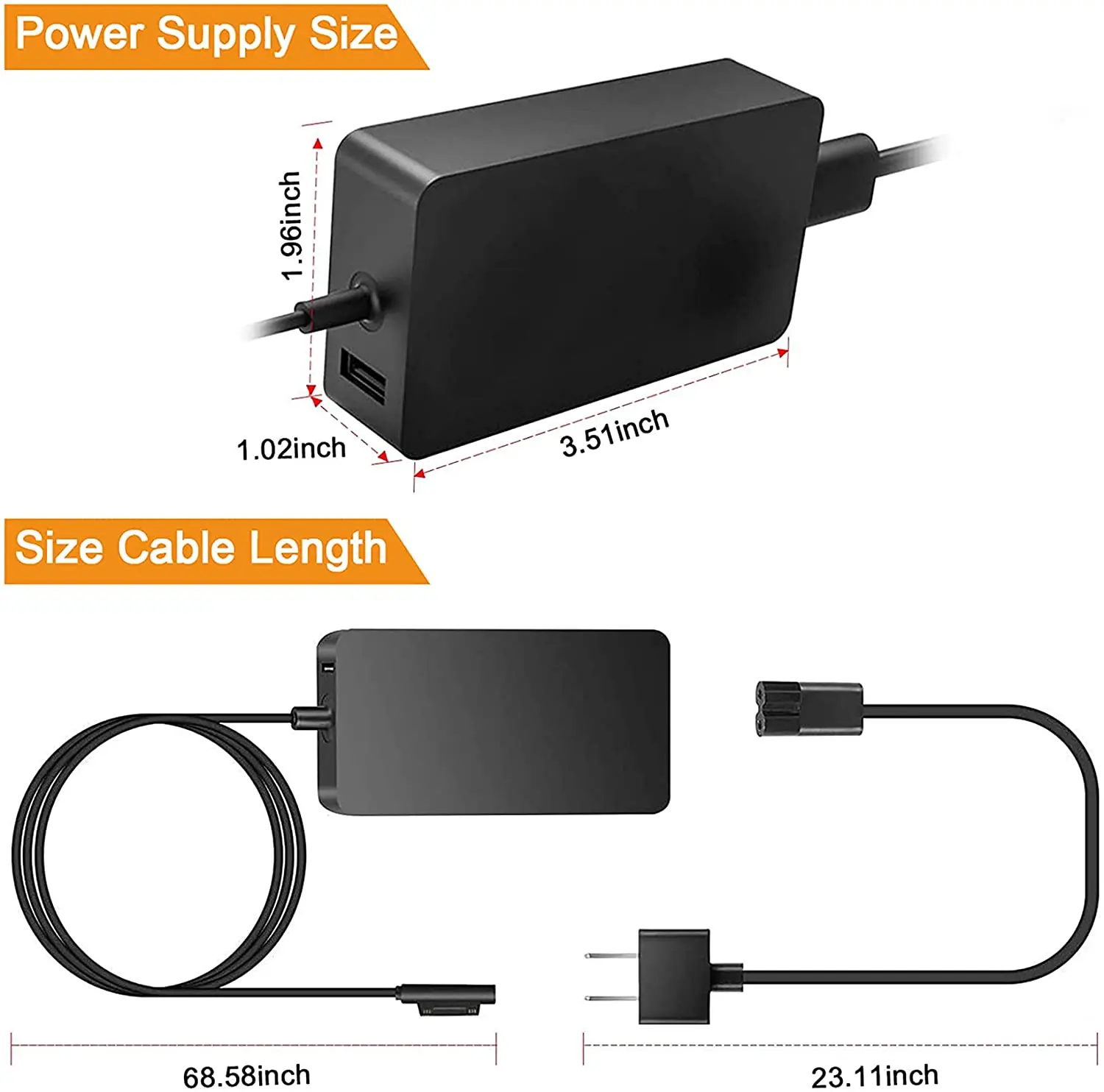 노트북 전원 AC 어댑터 15V 2.58A 44W 충전기 마이크로 소프트 1796 1769 1800 새로운 표면 도서 프로 3 프로 4 프로 5 프로 6 충전기