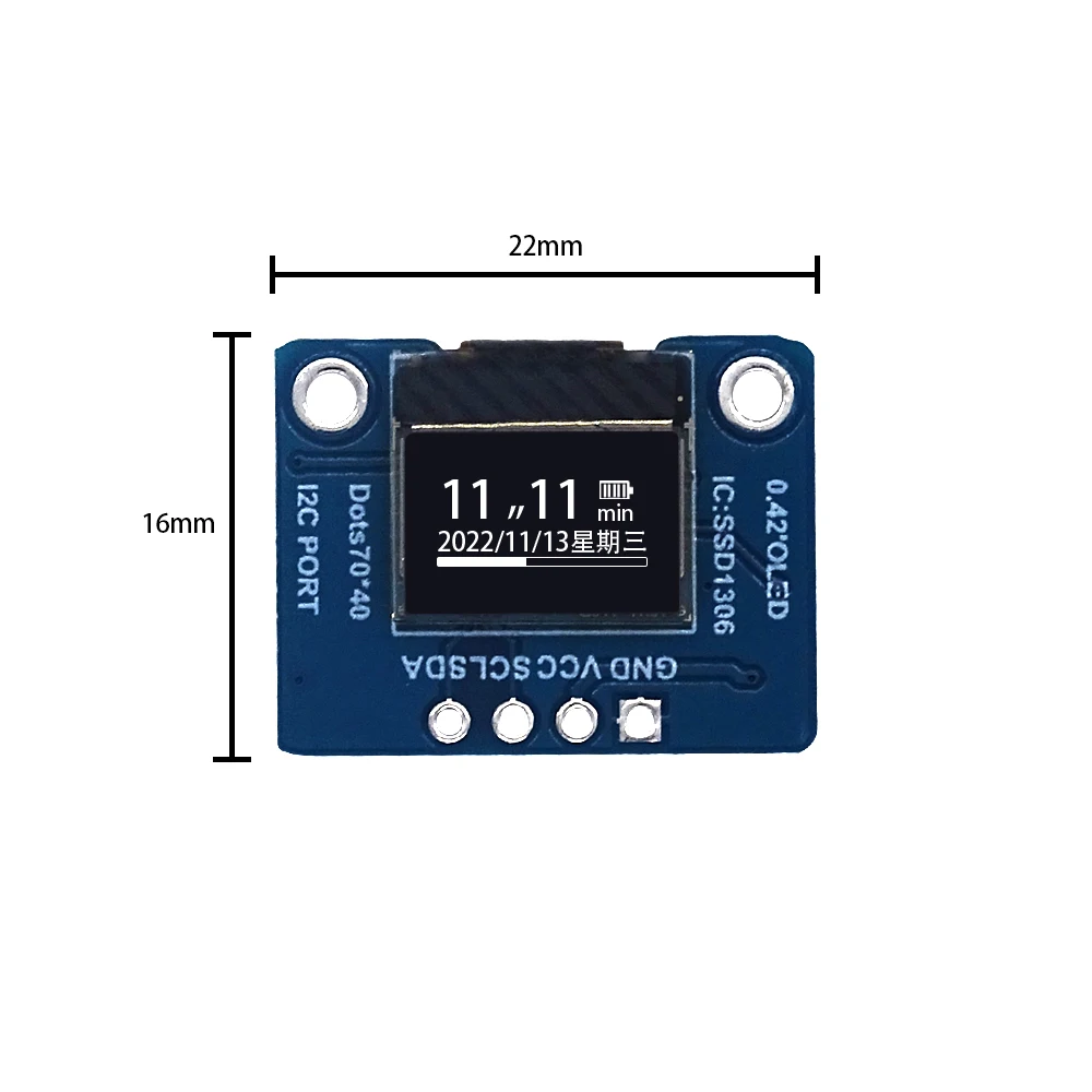 주요 기능: 크기: 0.42" 픽셀: 72X40 픽셀 CPU 인터페이스: I2C 드라이버 IC: SSD1306 디스플레이 색상: 흰색 그래픽 OLED 패키지 포함 사항 X 0.42 인치 4 핀 OLED 디스플레이 SSD1306 LCD IIC 인터페이스 모듈