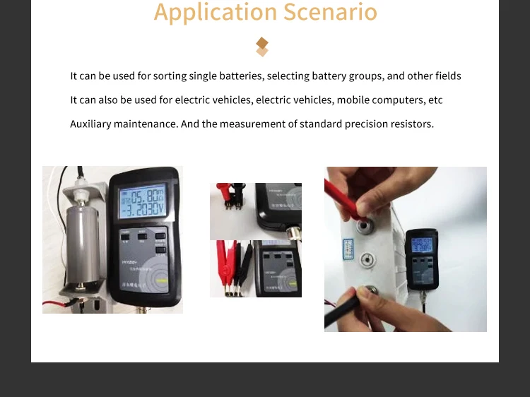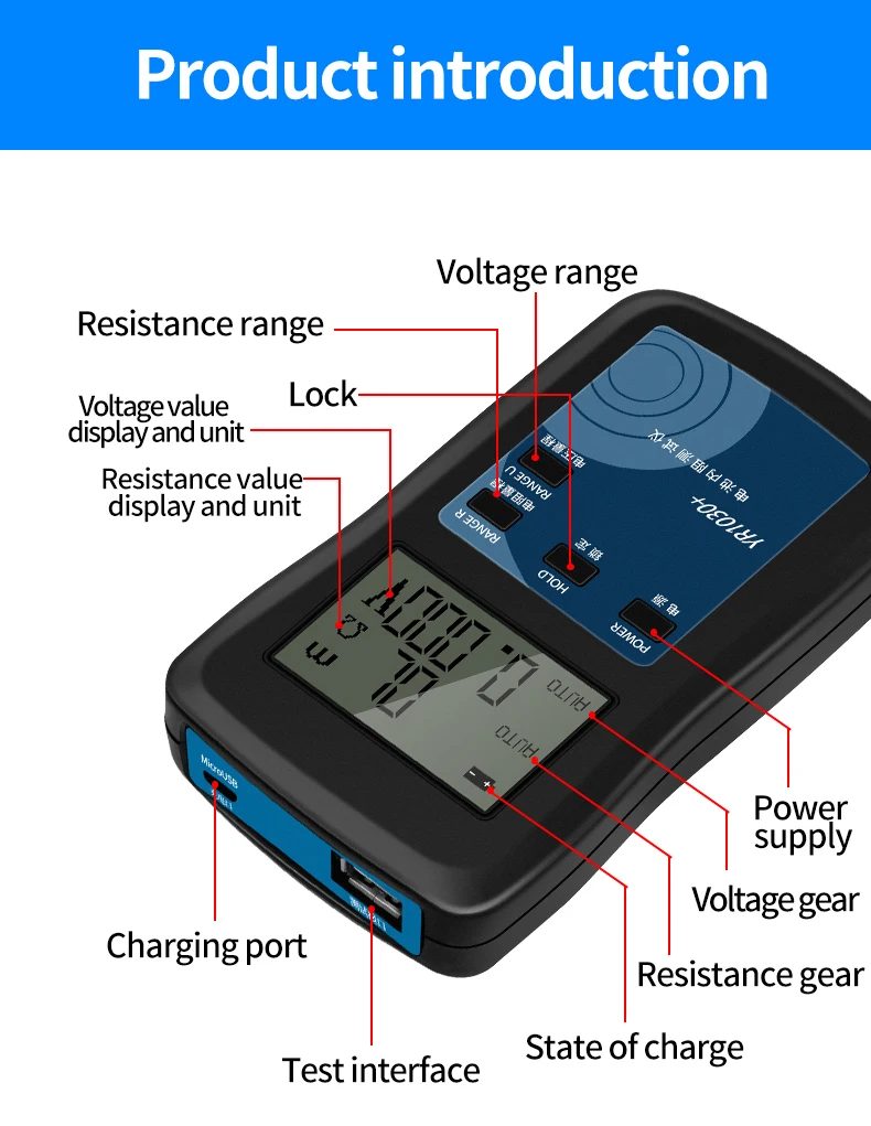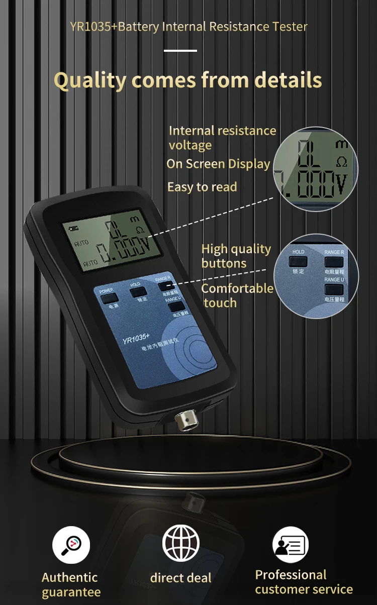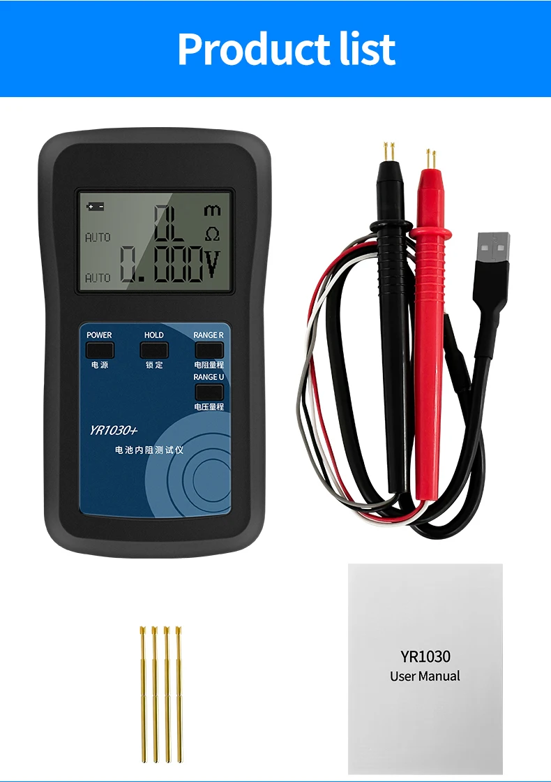 YR1035 배터리 내부 저항 테스터는 내부 저항과 전압 값을 동시에 테스트 할 수있는 진정한 4 선 내부 저항 테스터이며 저항 측정에도 사용할 수 있습니다. 측정 결과가 동일한 화면에 표시됩니다. 이 제품은 배터리 매칭, 배터리 성능 테스트, 배터리 스크리닝 등에 적합합니다. 이 기계는 컴팩트한 구조로 휴대가 간편합니다. 그것은 완벽한 전기 기술자 및 전자 테스트 기계입니다.