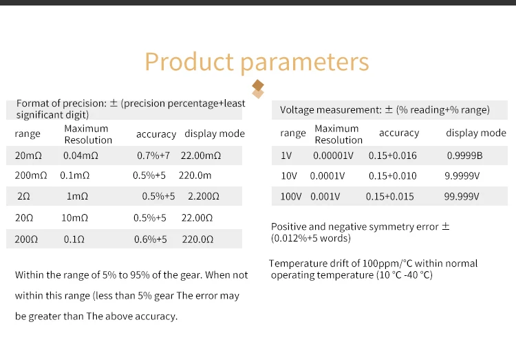 기어의 5%-95% 범위에서, 이 범위 내에 있지 않을 때 (기어 범위의 범위의 5% 미만, 또는 기어 범위의 95% 보다 큰 경우), 오류는 위의 정확도보다 클 수 있습니다.