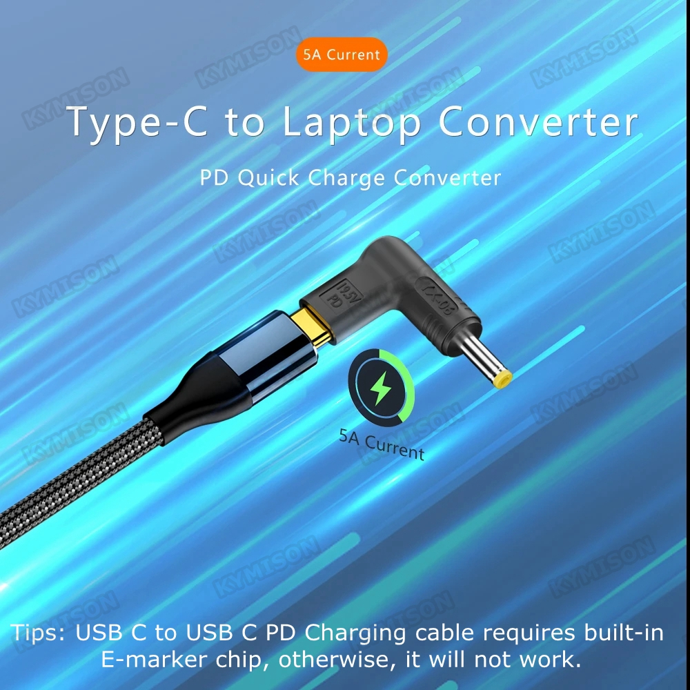 PD 100W Type C to Universal Laptop Charger Converter for Asus Lenovo Hp Dell Acer Samsung USB C Fast Charger Adapter Connector