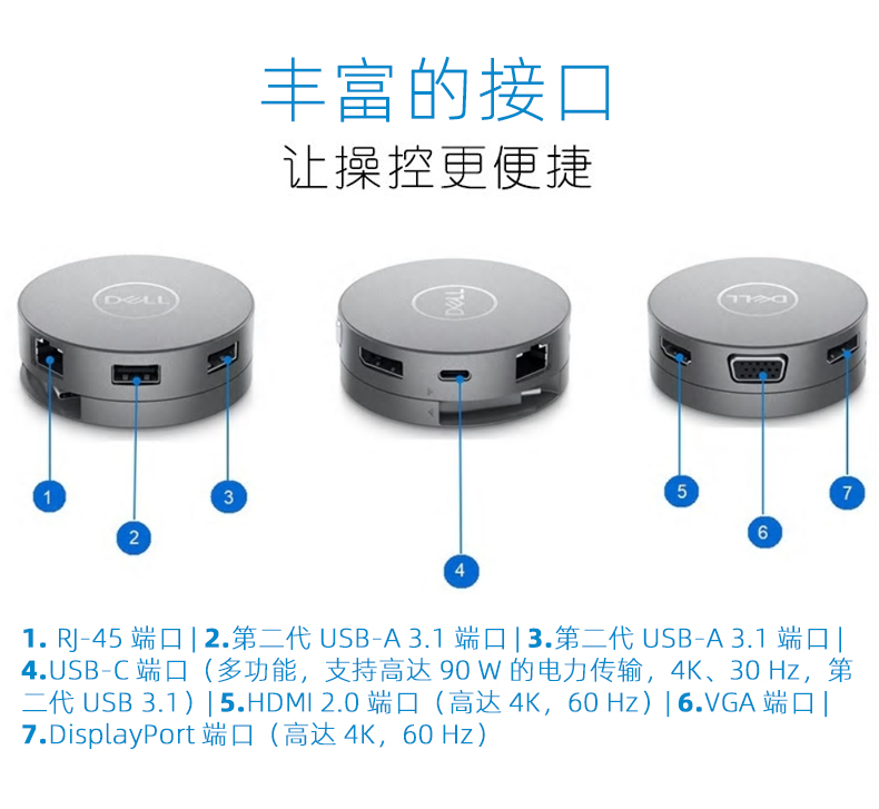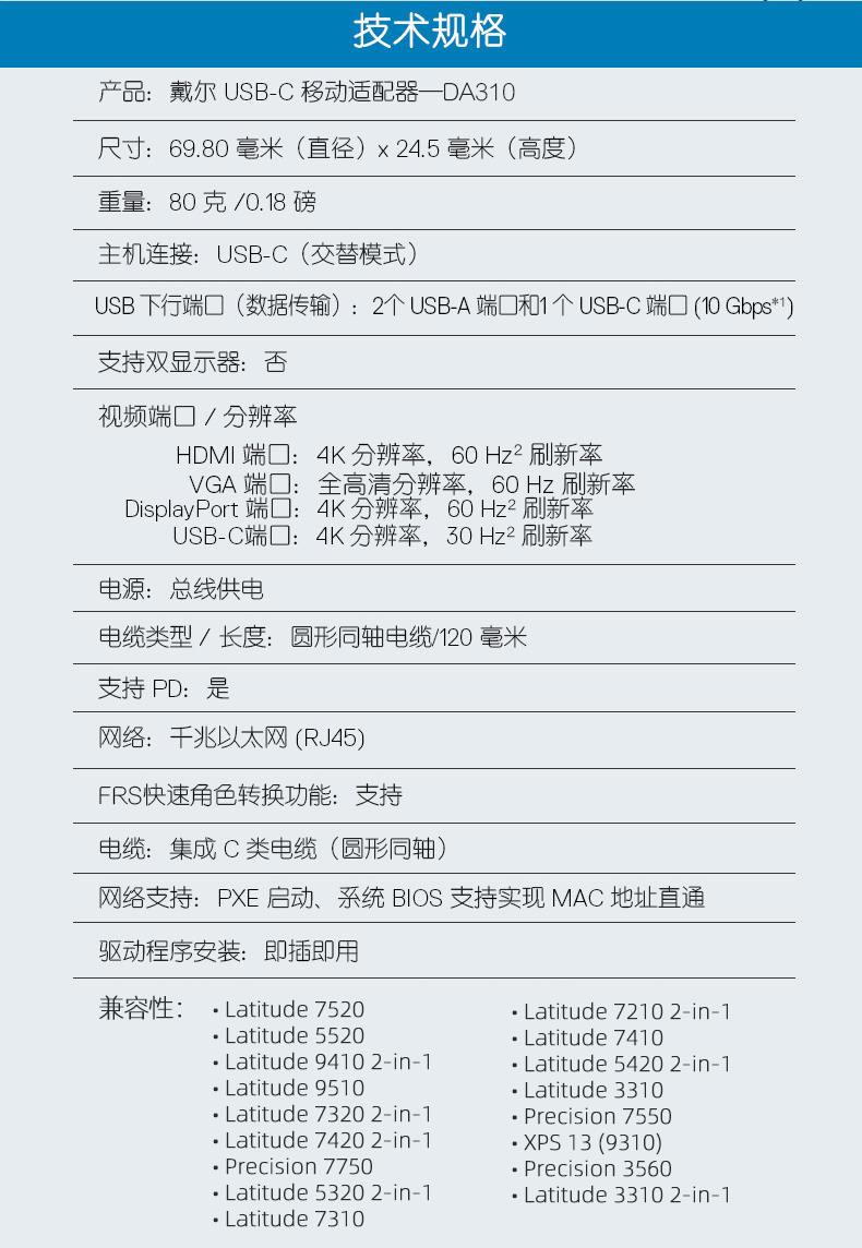 Dell델 DA310 USB 멀티어댑터 어댑터 도킹 USB in
