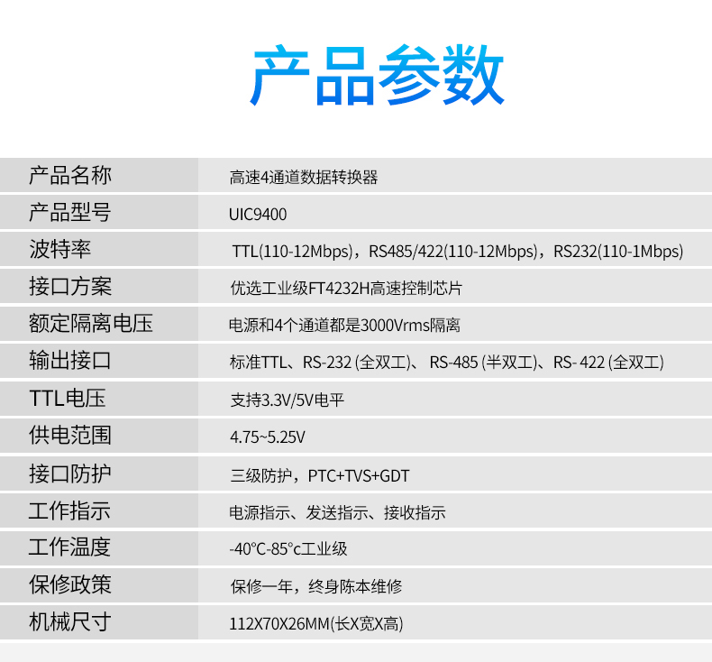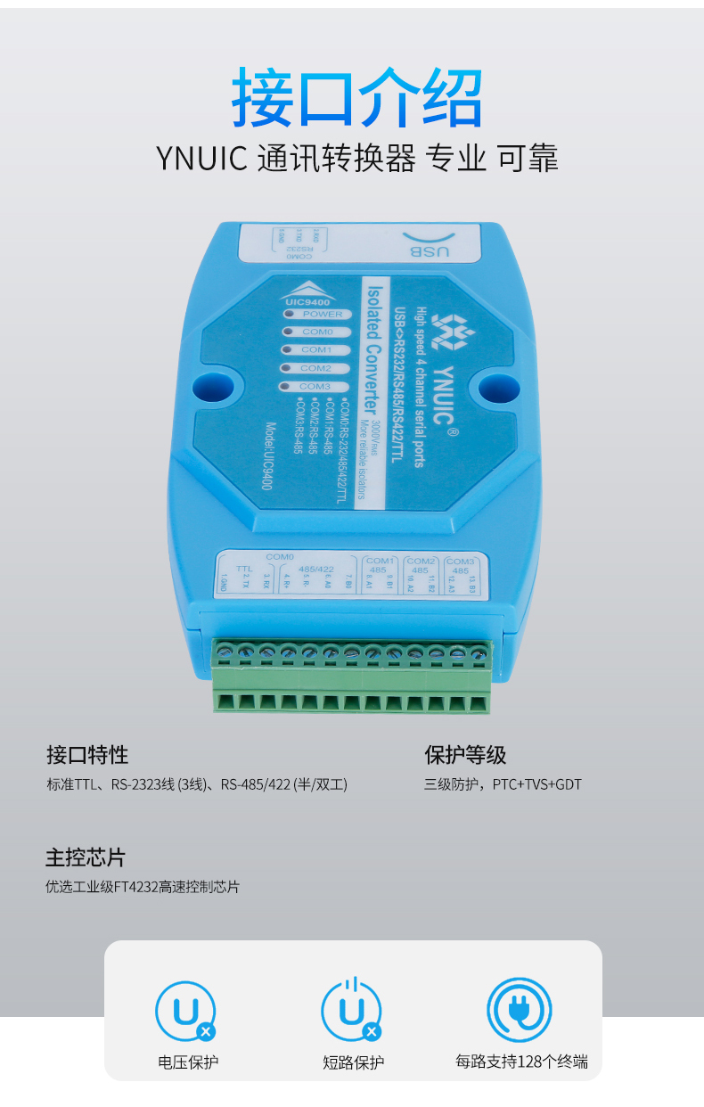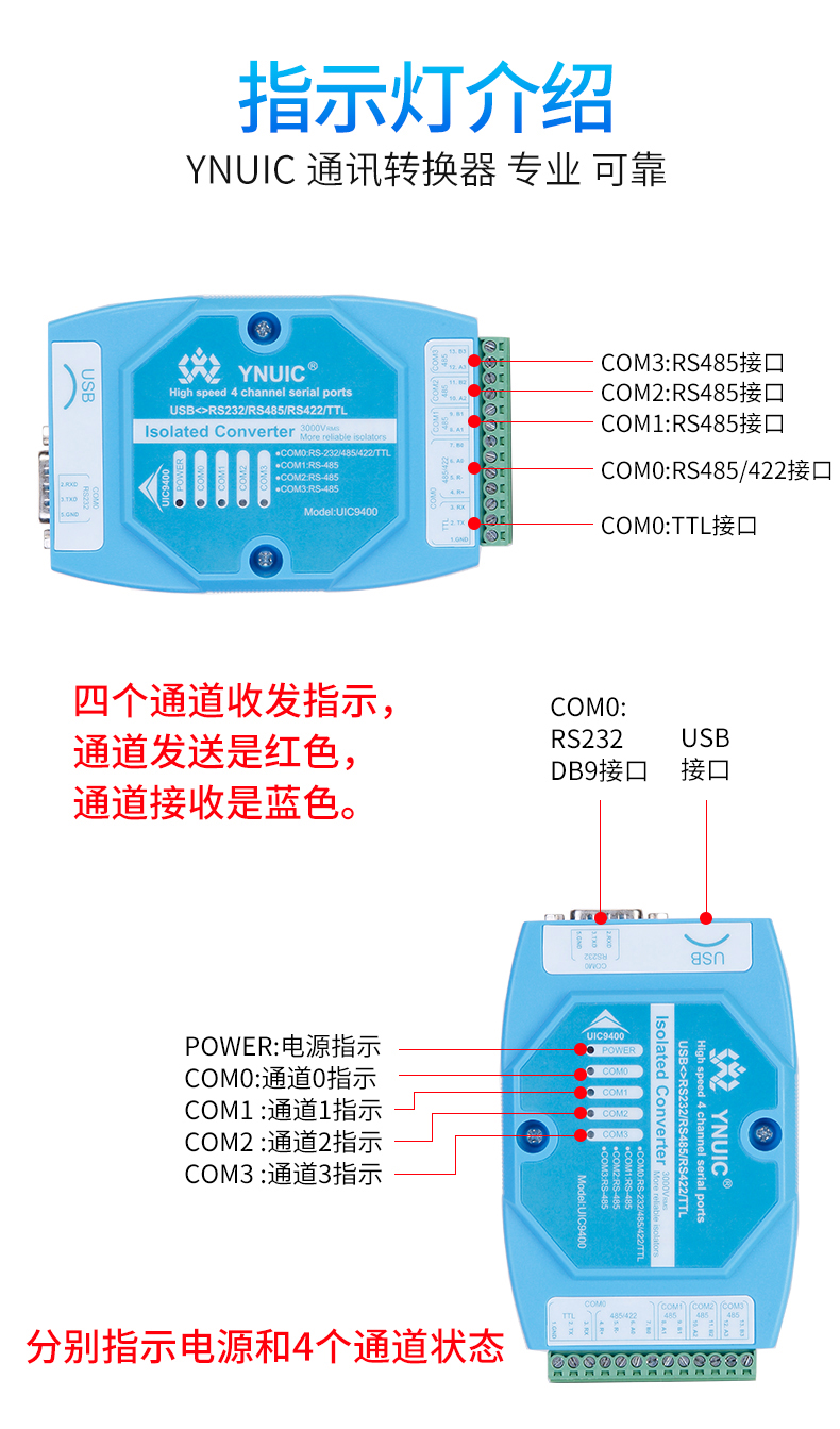 색상 분류 : UIC9401 쿼드 채널 USB회전485/TTL