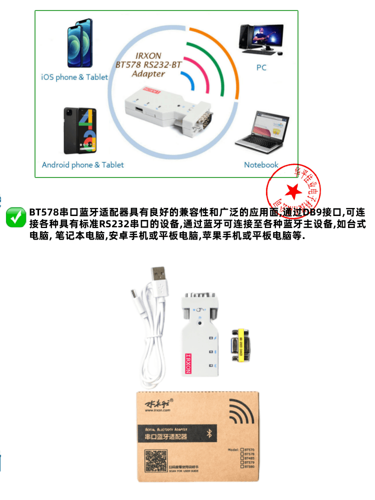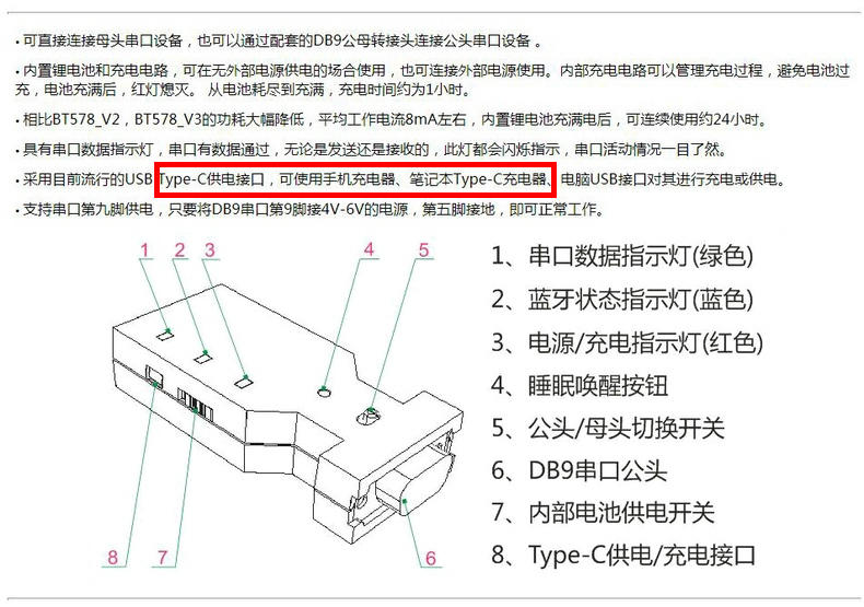 블루투스 어댑터 RS232 모드 직렬 BT5701 센서 듀얼 케이블 C타입 라인