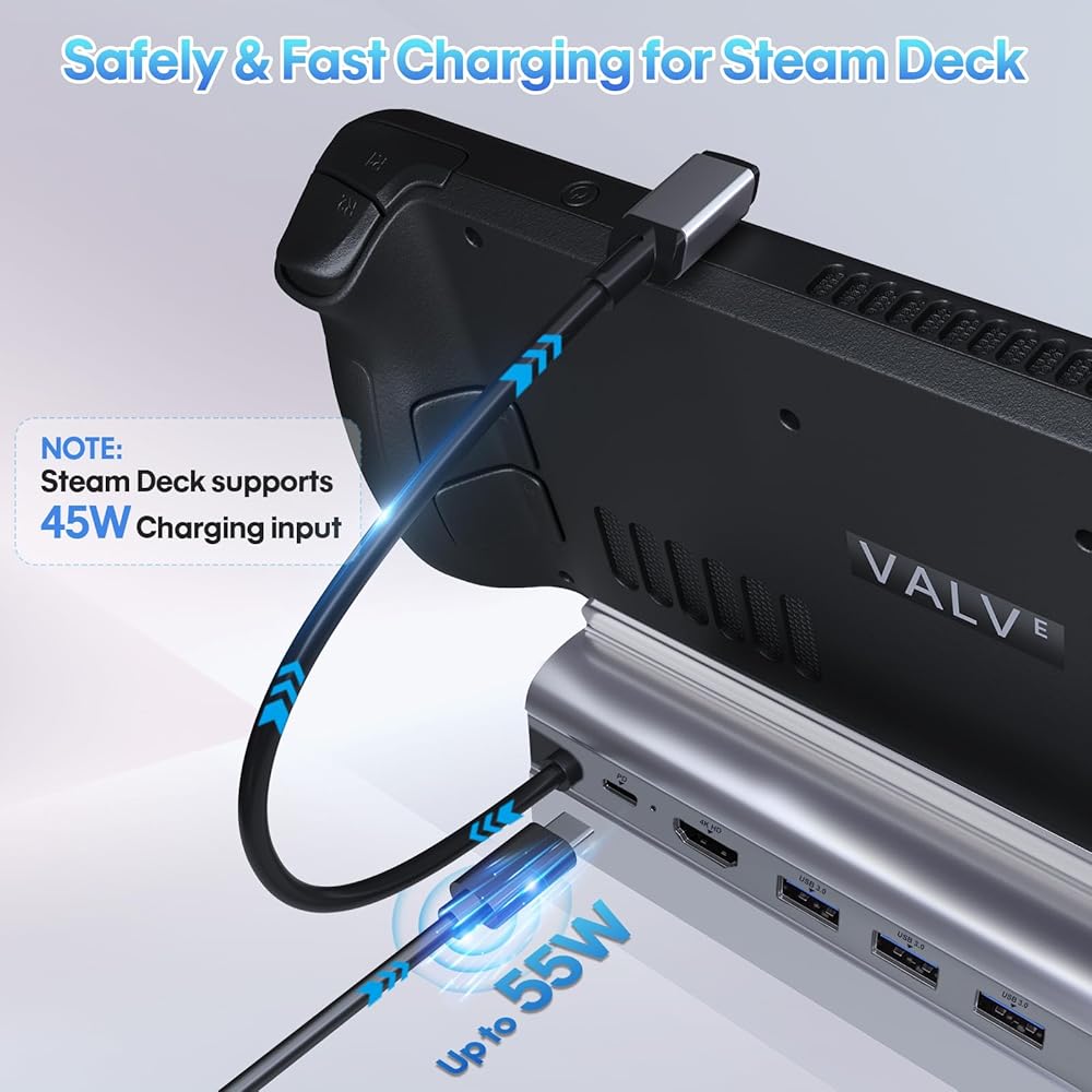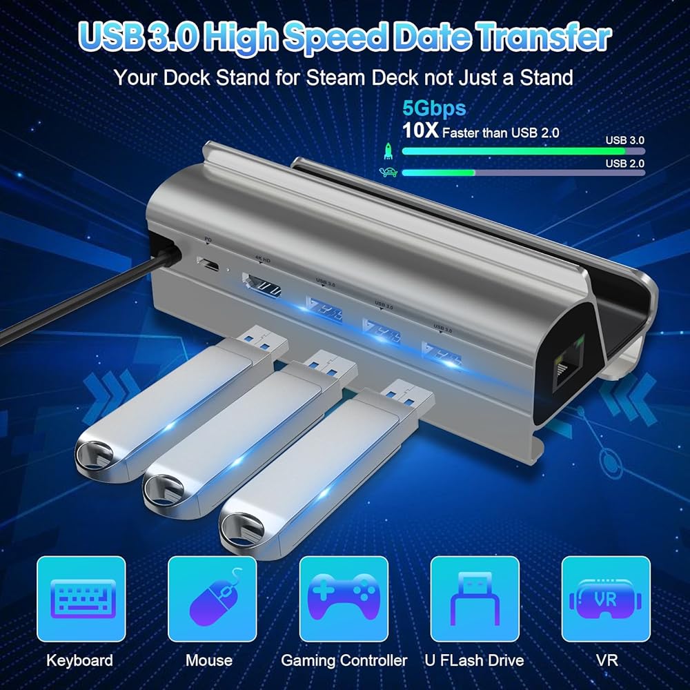스팀 덱 ROG 앨리용 도킹 스테이션 HDMI 2.0 4K 60Hz 1000Mbps 기가비트 이더넷 USB-A 3.0 3개 밸브 스팀