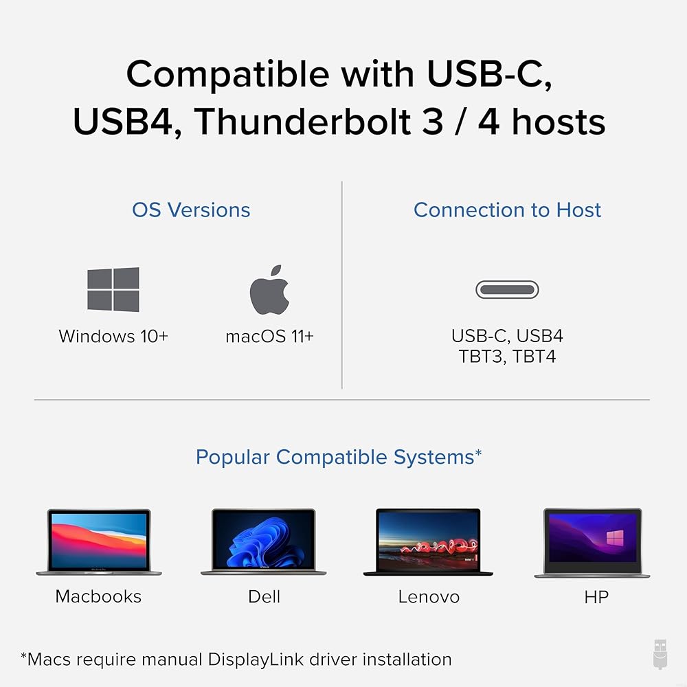 플러그형 7-in-1 USB C 도킹 스테이션 듀얼 모니터 - 듀얼 HDMI 도크는 Mac 및 Windows USB4 Thunderbolt