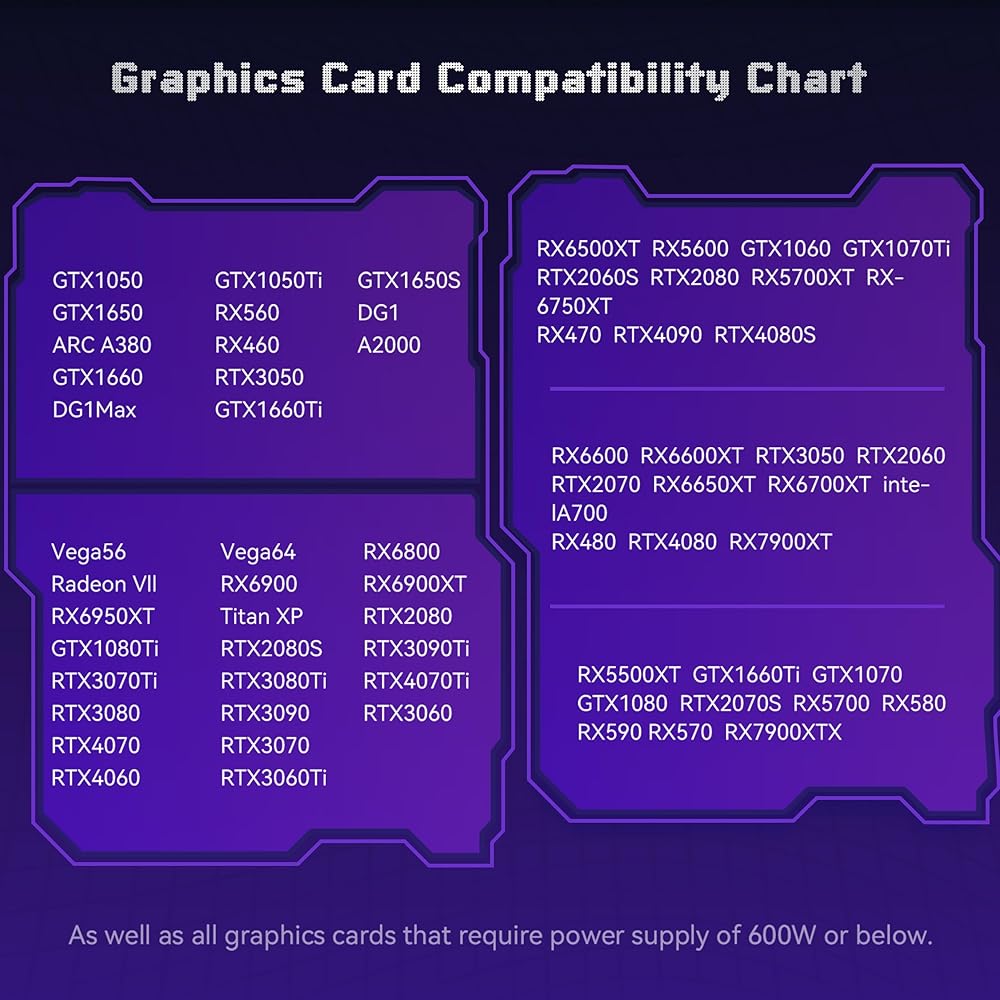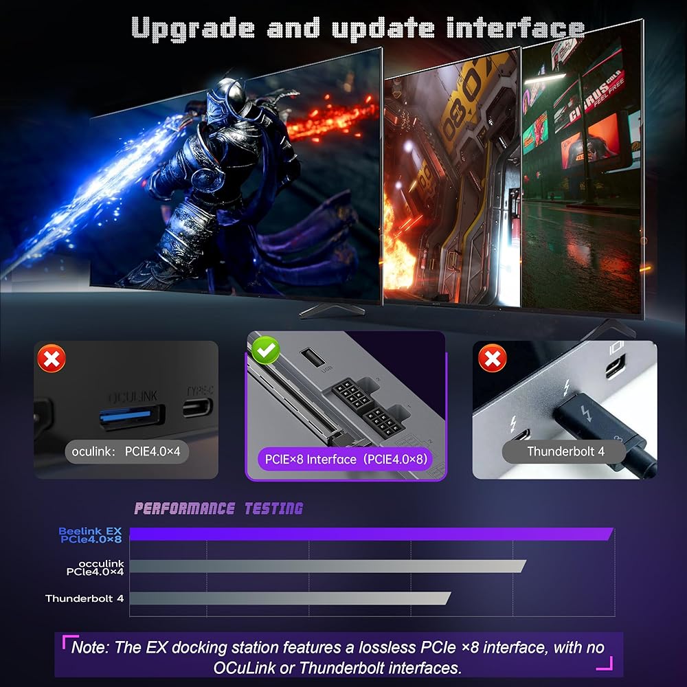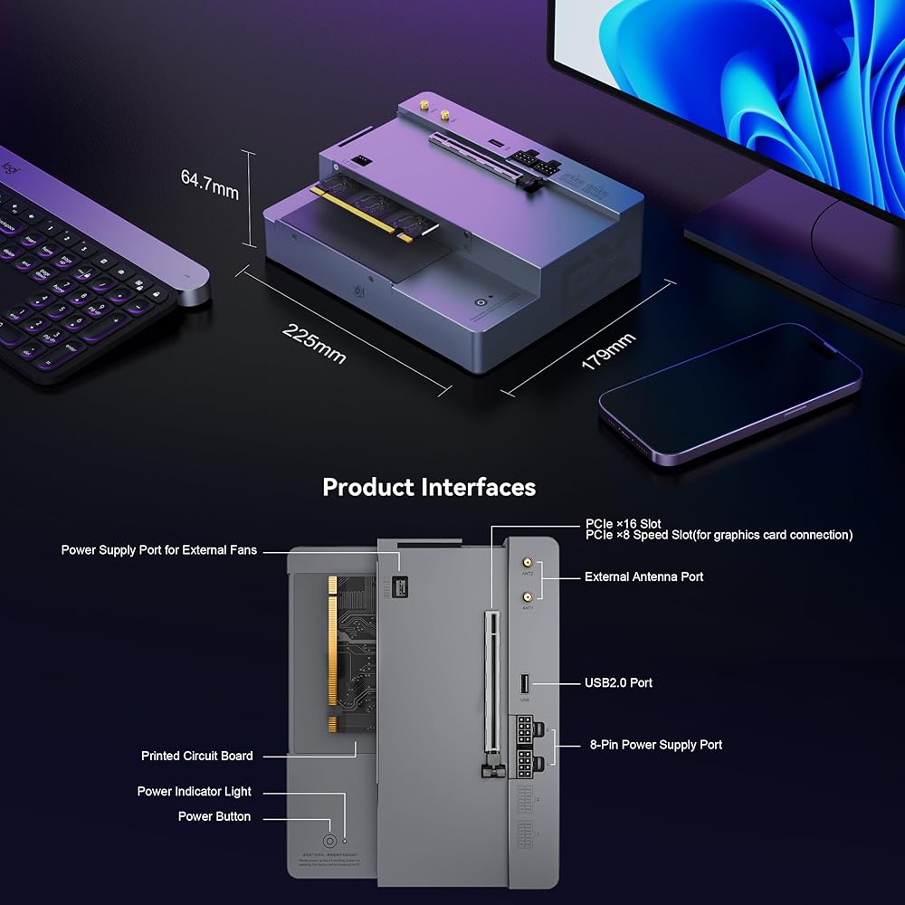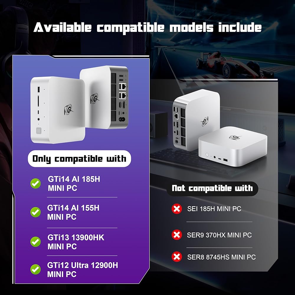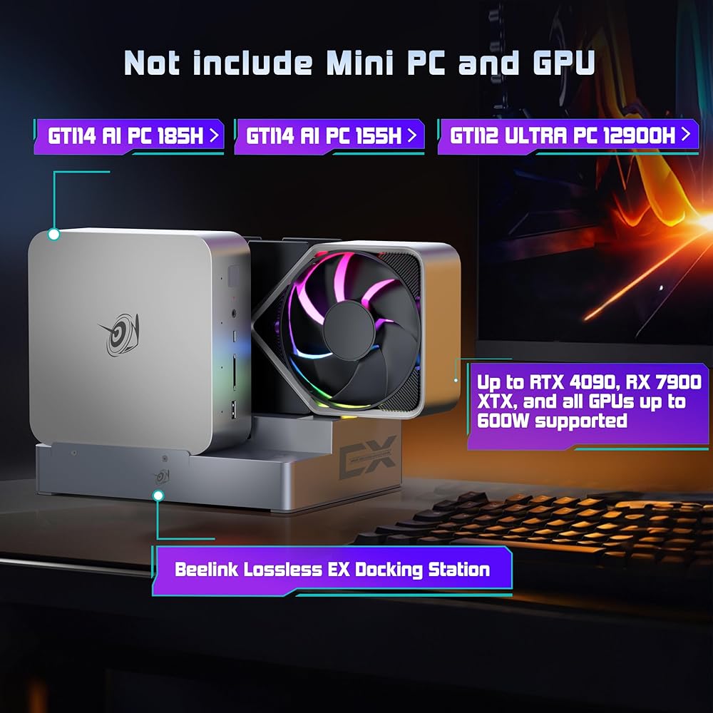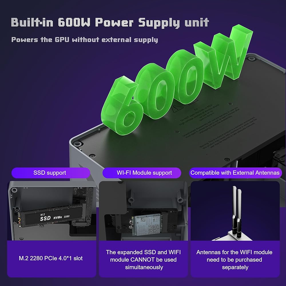 Beelink 외장 GPU 도킹 스테이션 PCIe 16 슬롯 600W PSU/SSD/Wi-FI 모듈/외부 안테나 내장 GTi14 155H/185H