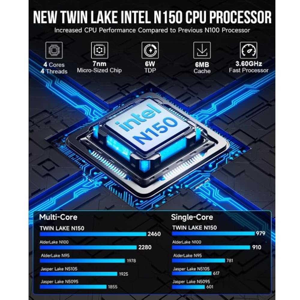GMKtec 미니 PC 인텔 N150(터보 3.6GHz) 16GB DDR4 1TB PCIe M.2 NVMe SSD 데스크톱 컴퓨터 4K 듀얼 HDMI