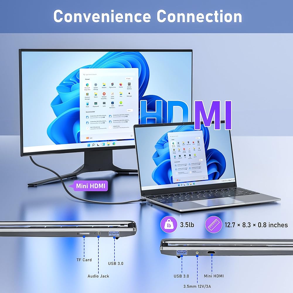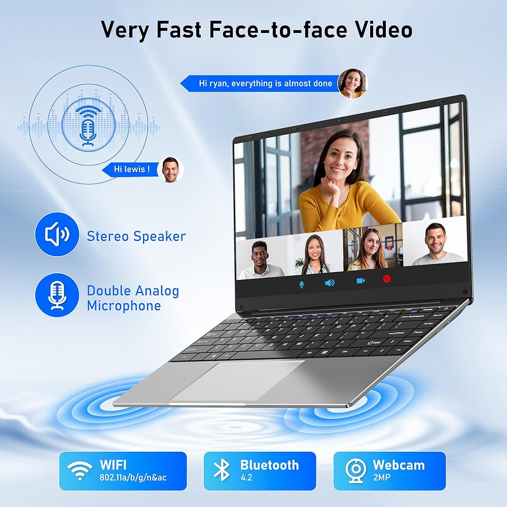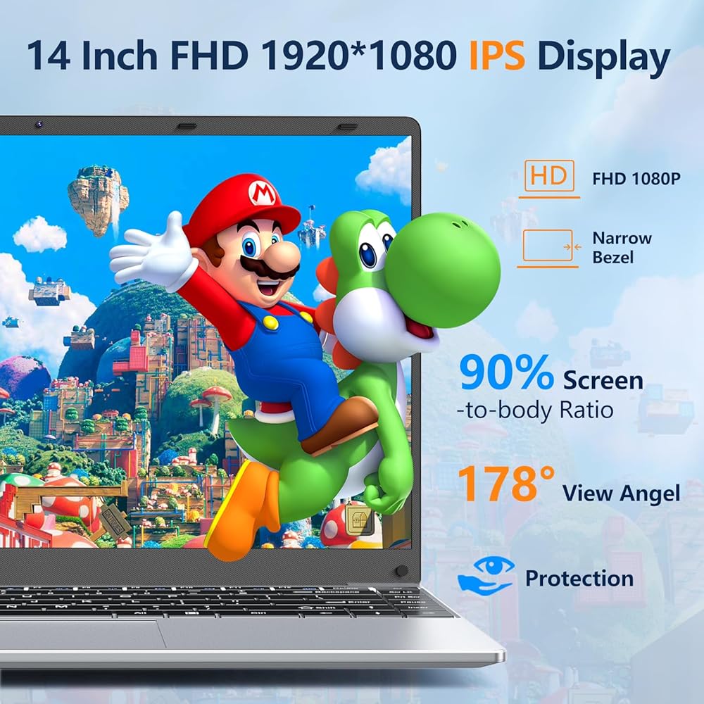 NIAKUN 14인치 게이밍 노트북 N5095 노트북(최대 2.9GHz) 8GB RAM 256GB SSD FHD 1920 1080 180 앵글