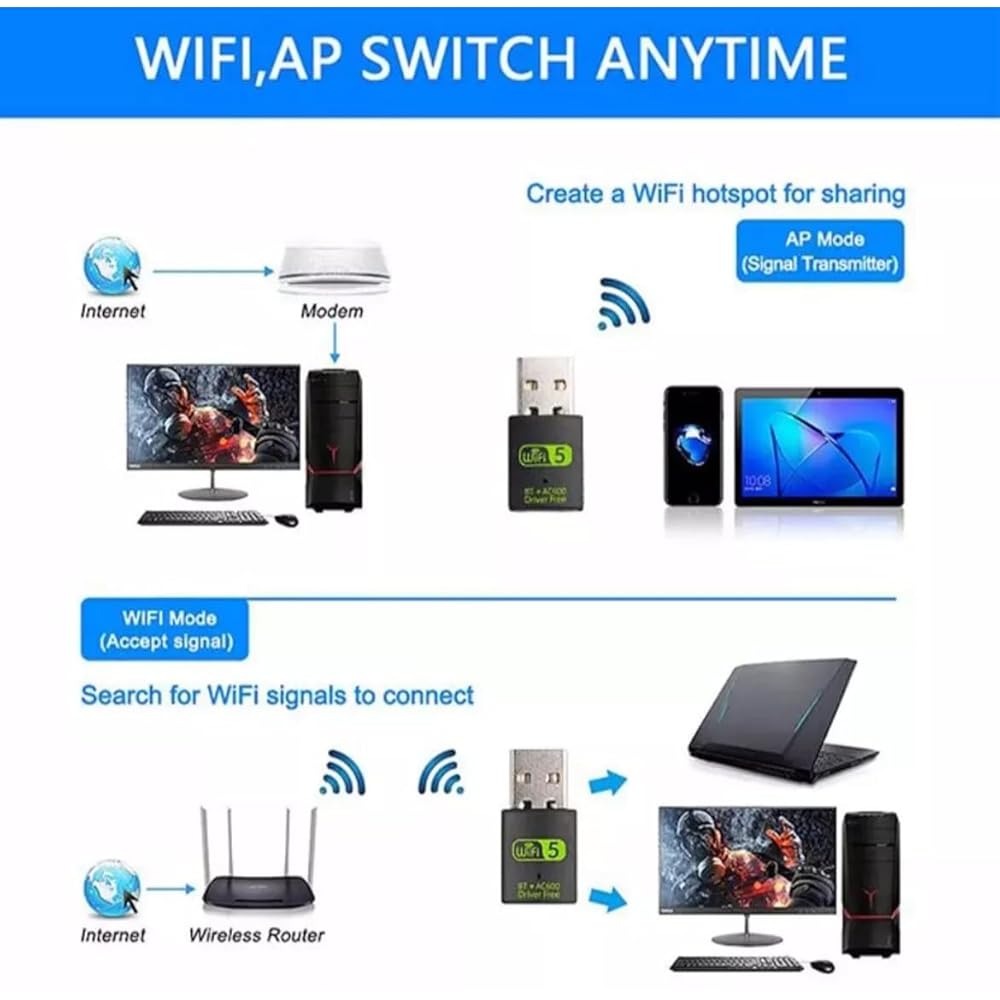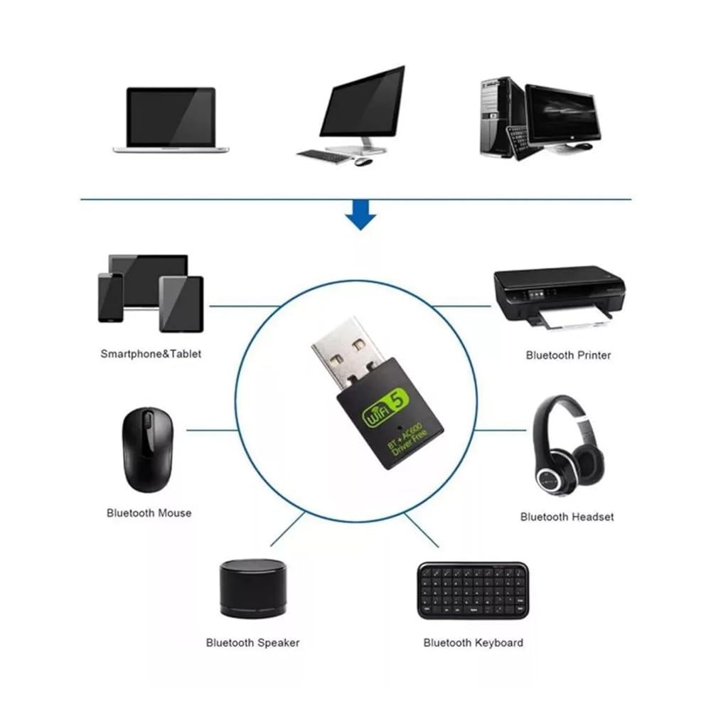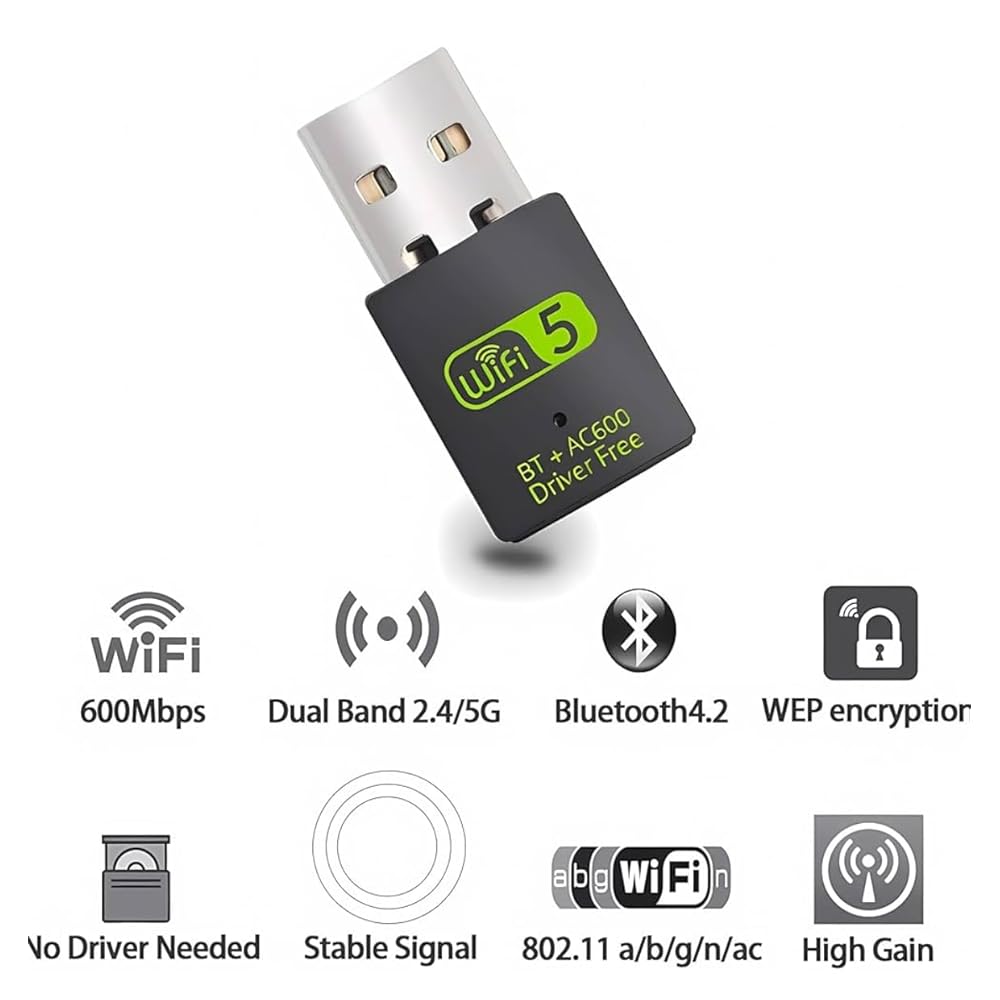 USB WiFi 블루투스 어댑터 600Mbps 듀얼 밴드 2.4/5GHz 무선 네트워크 외부 수신기 PC/노트북/데스크탑