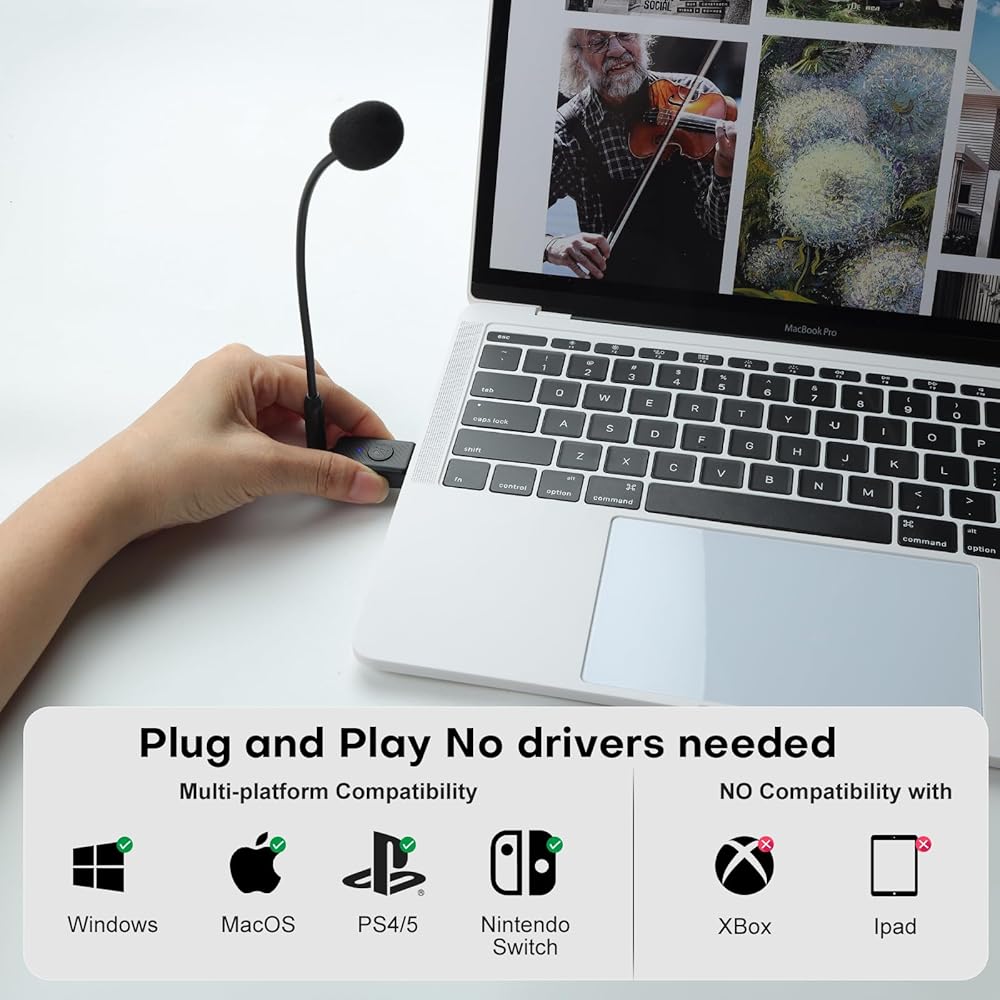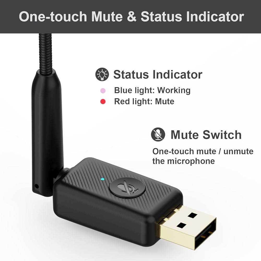 노트북 및 데스크톱 컴퓨터용 미니 USB 마이크 구스넥 및 음소거 버튼이 있는 카디오이드 콘덴서 마이크 PC