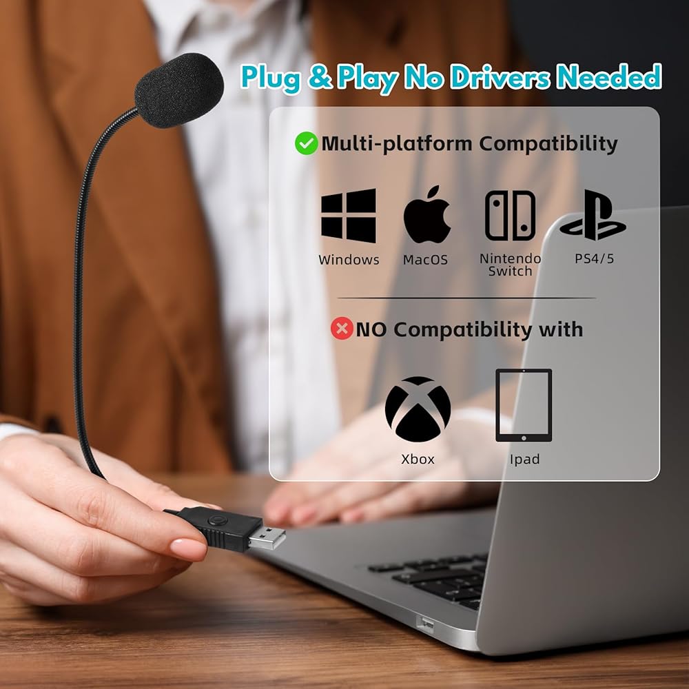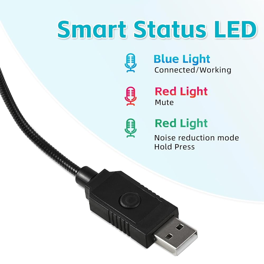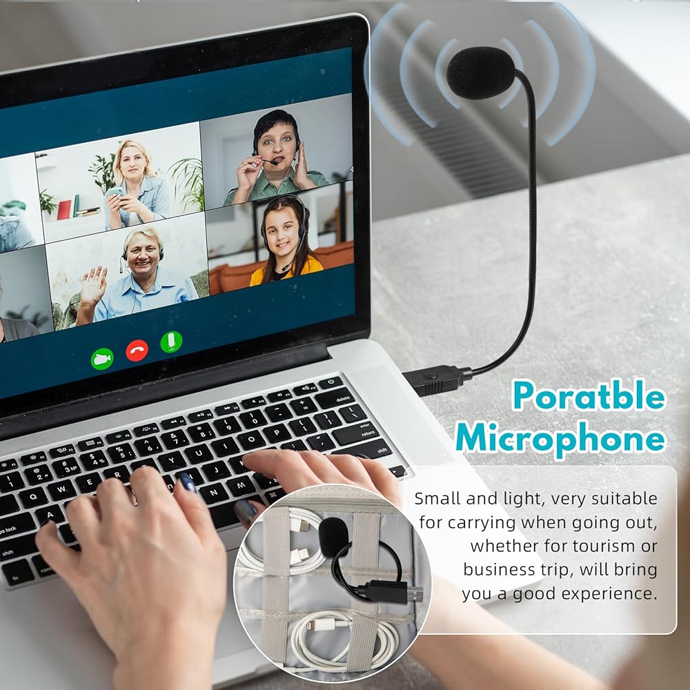 노트북용 미니 USB 마이크 외장 데스크탑 컴퓨터 소형 마이크 구스넥 및 음소거 버튼이 있는 콘덴서 휴대용