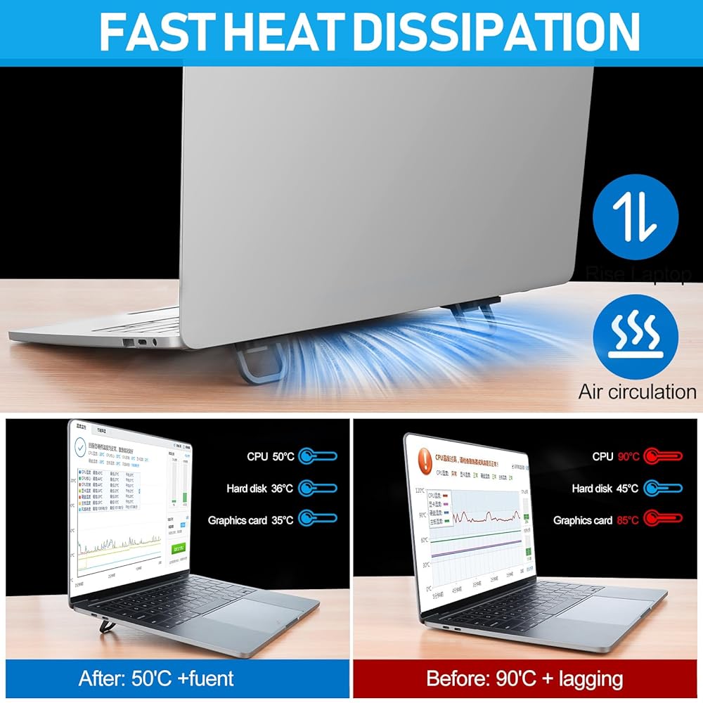 이핀브 미니 노트북 스탠드 휴대용 노트북 스탠드 접이식 및 경량 인체공학적 라이저(환기식 냉각 기능