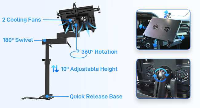 | Additional Features | Quick Release Button, Multi Joint Design, Rotatable, Built-in Fan, Adjustable |