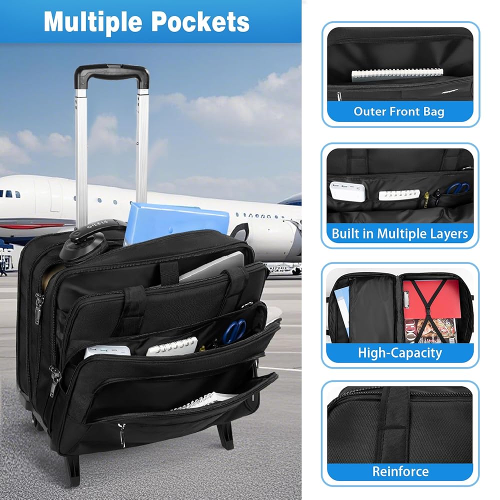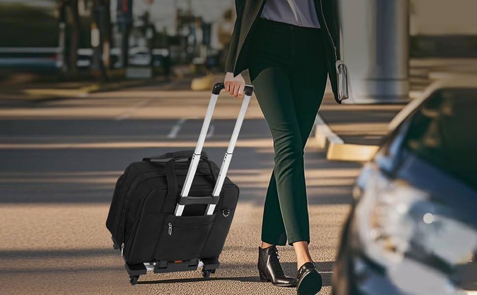 여성용 GMAK 롤링 노트북 가방 탈착식 트롤리가 있는 바퀴 달린 서류 가방 업무용/업무용/여행용 컴퓨터