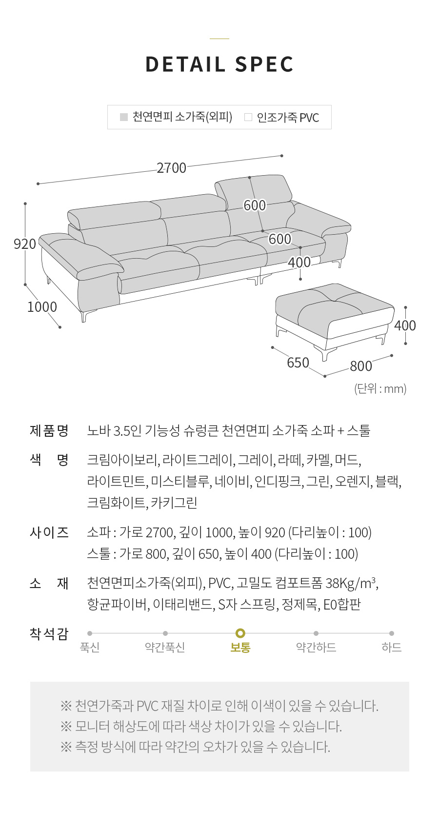 [자코모] 노바 3.5인 기.능성 슈렁큰 천연면피 소가죽 소파+스툴