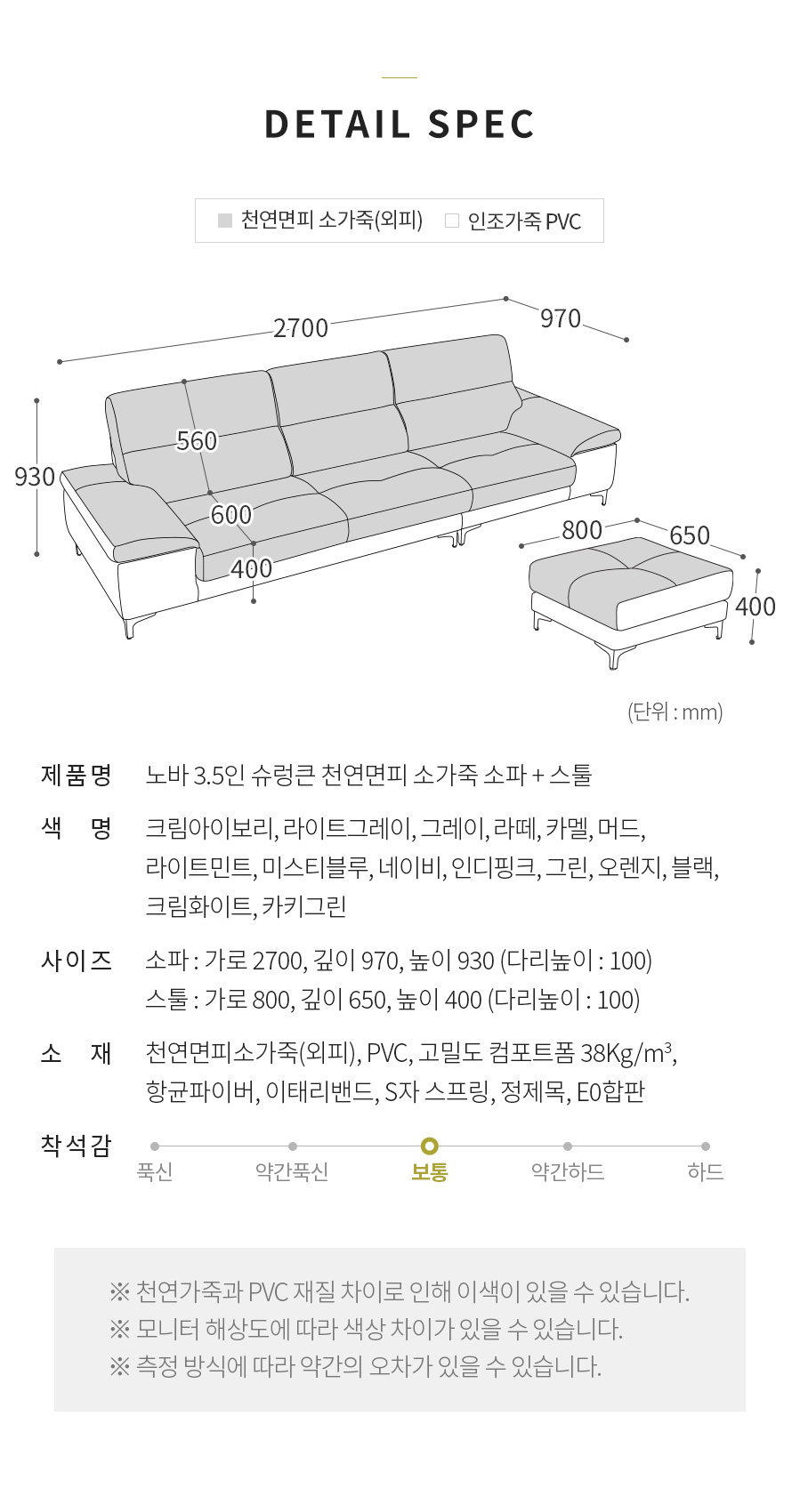 [자코모] 노바 3.5인 슈렁큰 천연면피 소가죽 소파+스툴