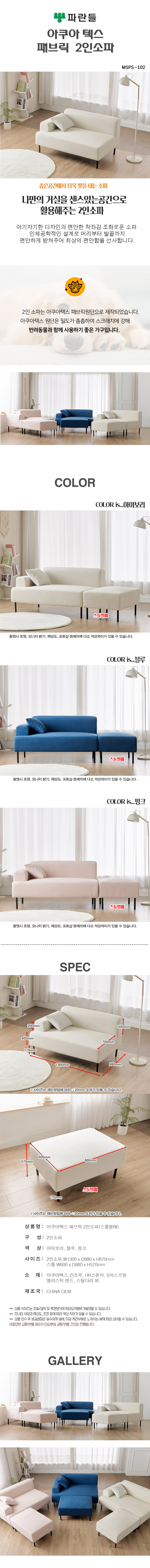 파란들 아쿠아텍스 패브릭 2인용소파 2인용쇼파 2인소파