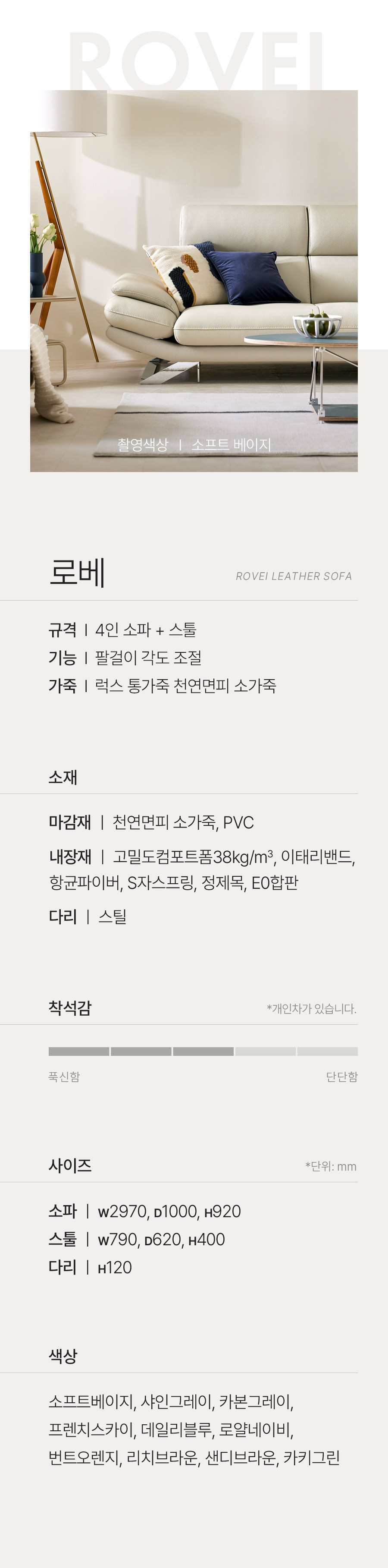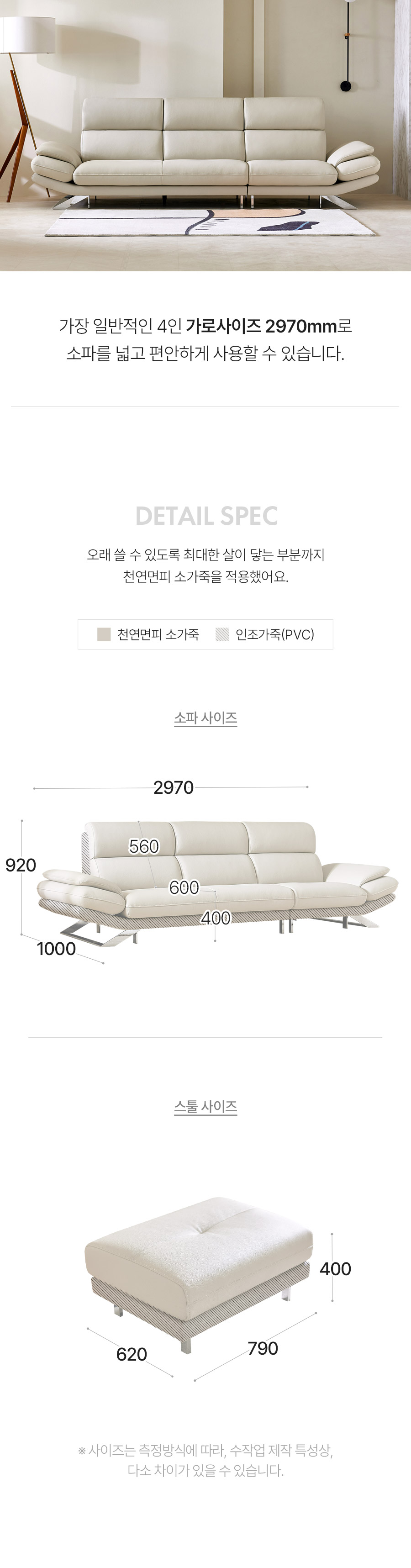 [자코모] 로베 4인 기능.성 럭스 통가죽 천연면피 소가죽 소파+스툴