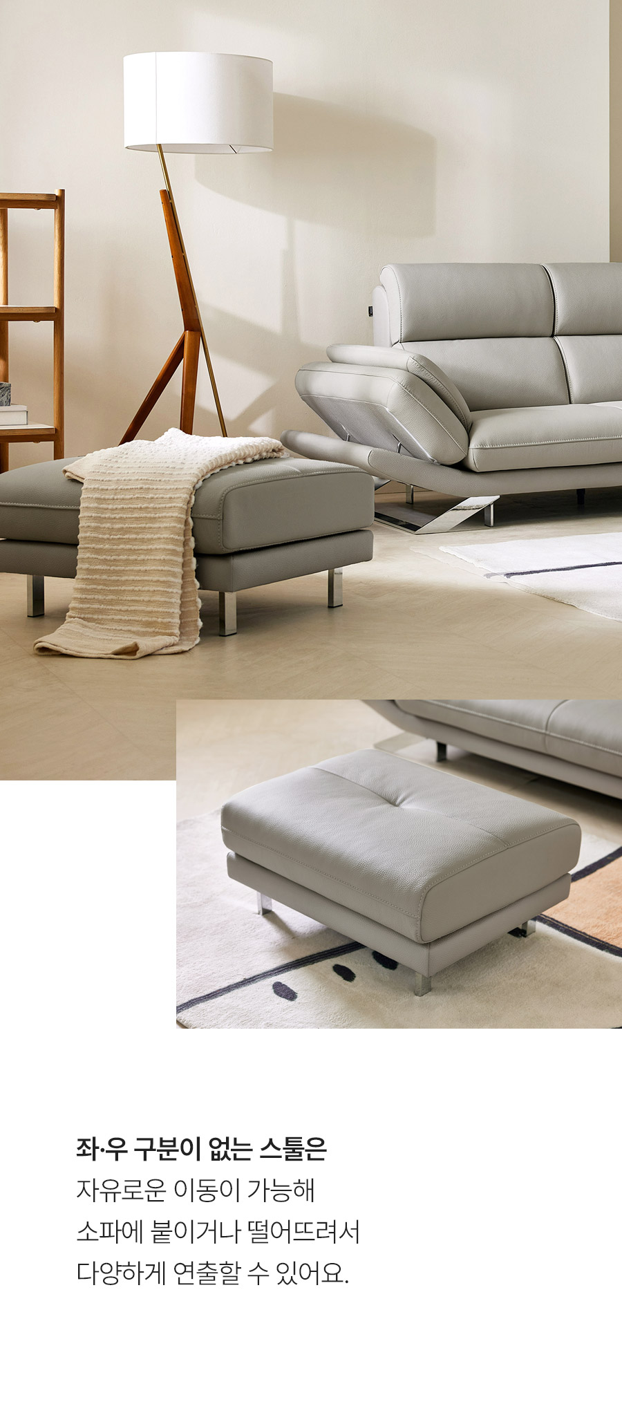 (현대Hmall)자코모 로베 3.5인 기능.성 럭스 통가죽 천연면피 소가죽 소파+스툴