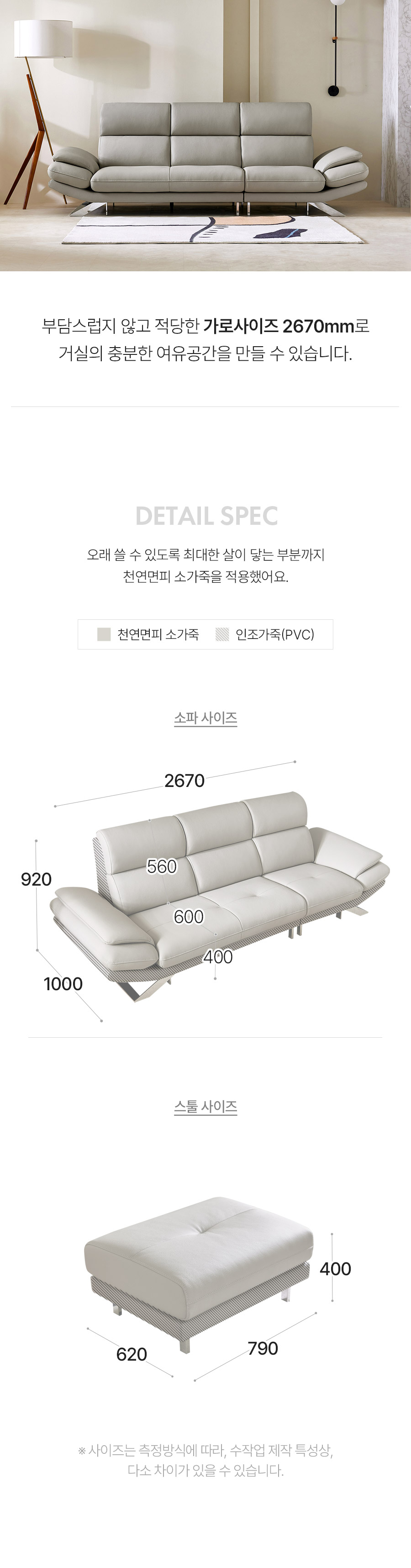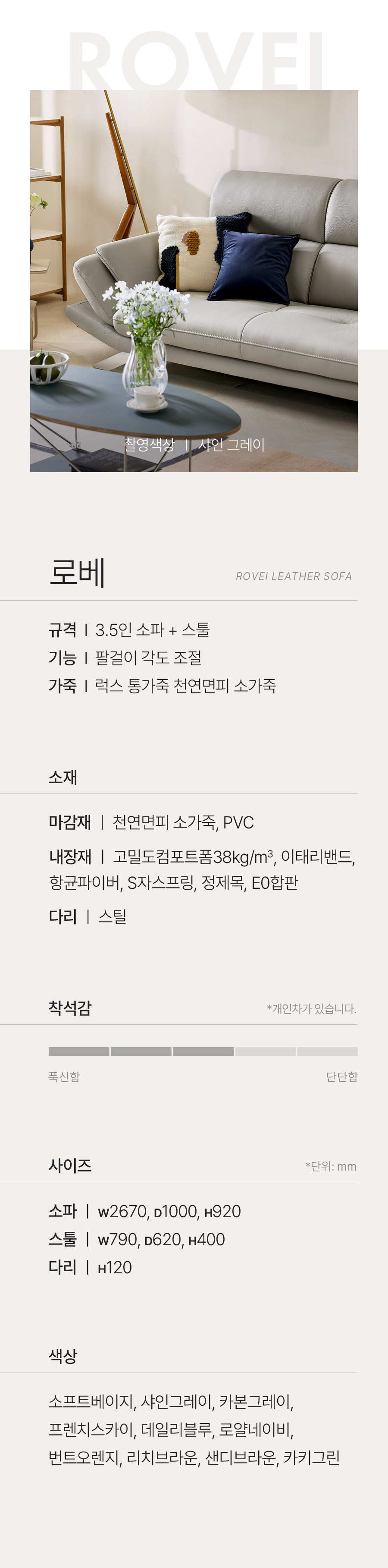 [자코모] 로베 3.5인 기능.성 럭스 통가죽 천연면피 소가죽 소파+스툴