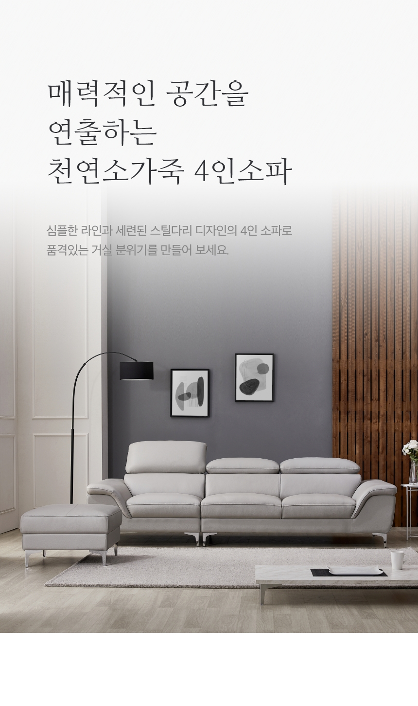 (현대Hmall)동서가구 캐니스 무빙헤드 4인용 천연면피 가죽소파+스툴 DF918665