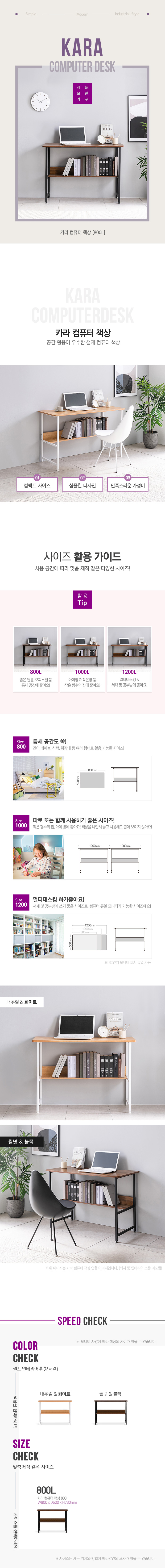 카라 컴퓨터 책상 800L 블랙화이트