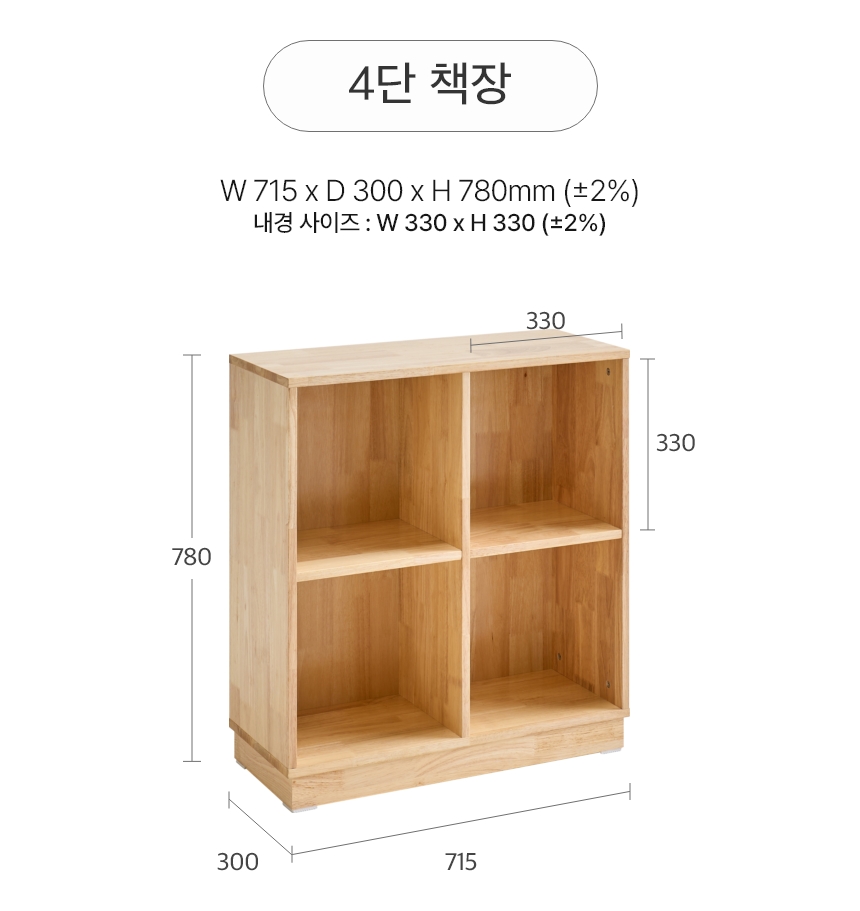 (현대Hmall)동서가구 어텀 미니 슬림 4칸 고무나무 원목 책장 DF923565
