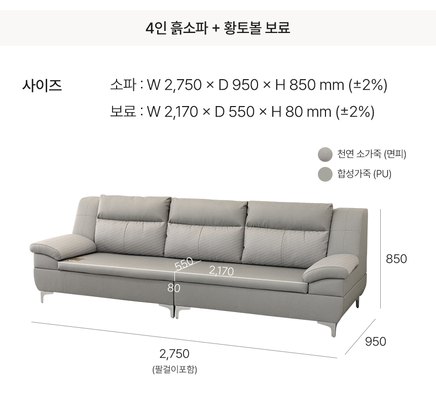 동서가구 테라 천연 면피가죽 온열 황토볼 4인용 흙소파 DF925868