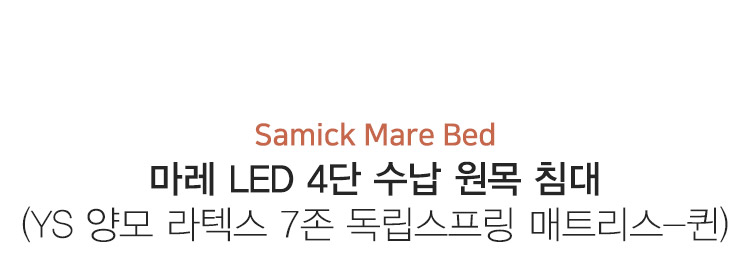 삼익가구 롯데단독특가마레 LED 4단 수납 원목 침대(YS 양모 라텍스 7존 독립스