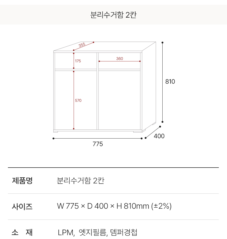 (현대Hmall)동서가구 유토 2칸 쓰레기통 재활용 분리수거함 상하부세트장 DF926164
