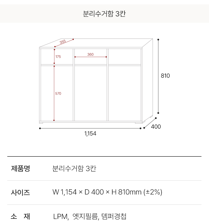 (현대Hmall)동서가구 유토 3칸 쓰레기통 재활용 분리수거함 상하부세트장 DF926165