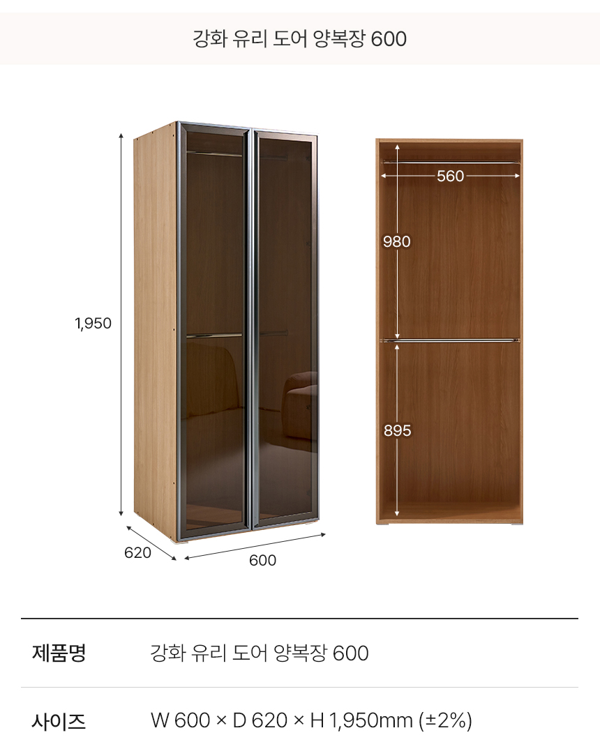 (현대Hmall)동서가구 브론즈 디스플레이 강화유리도어 양복장 600 DF926055
