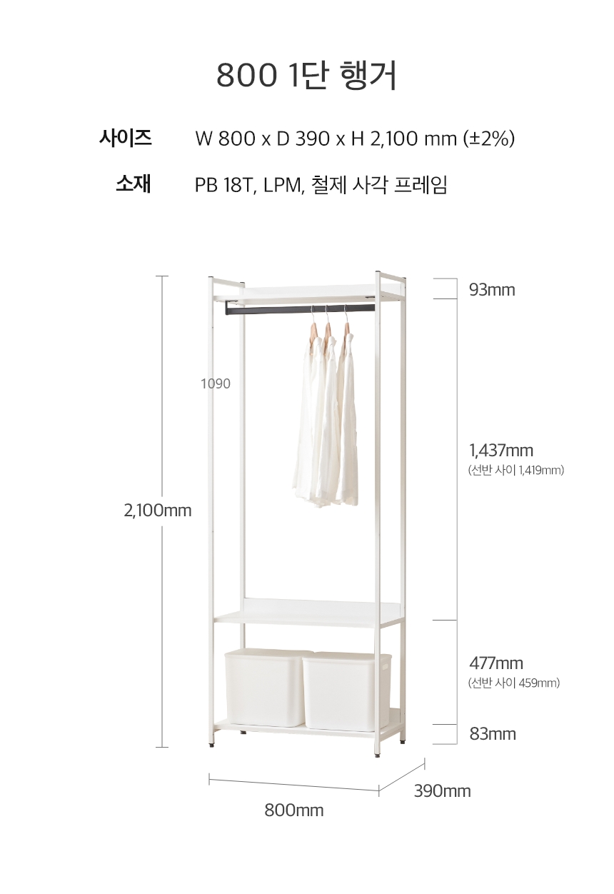 (현대Hmall)동서가구 시몬 시스템 철제 드레스룸 800 1단 행거 DF923361