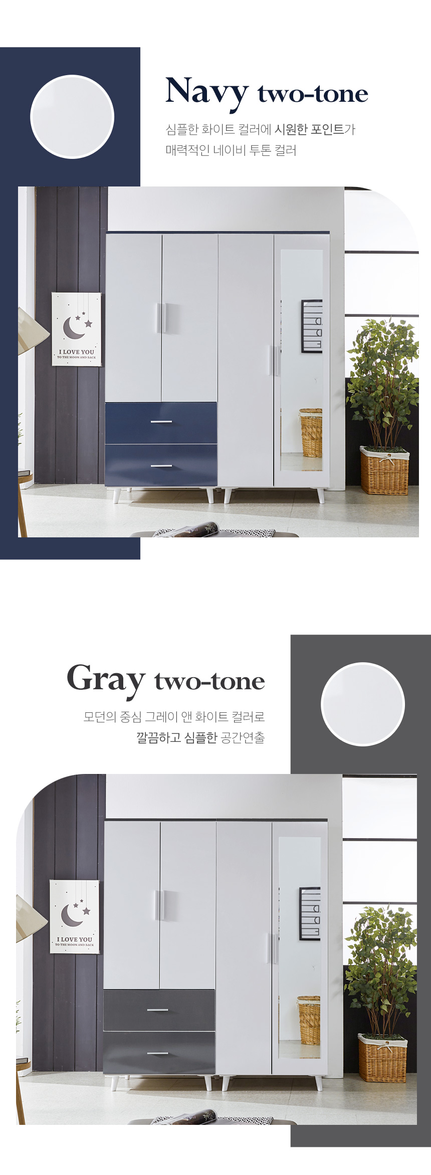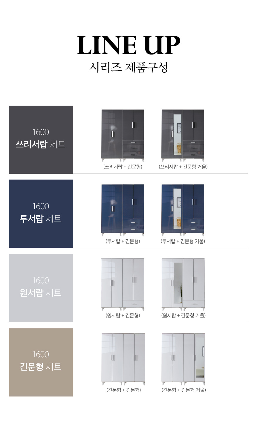 (현대Hmall)동서가구 라미 1600 2단 서랍 거울 옷장 세트 DF923438