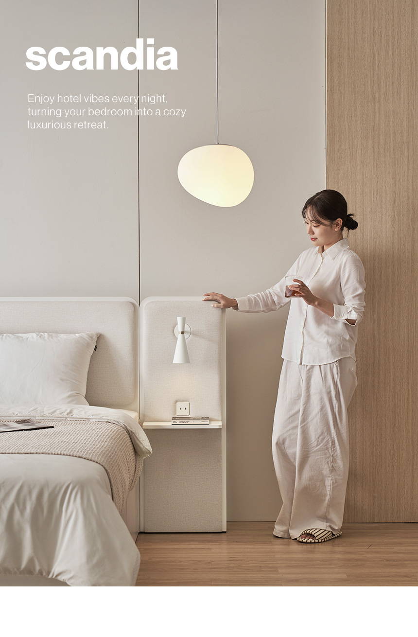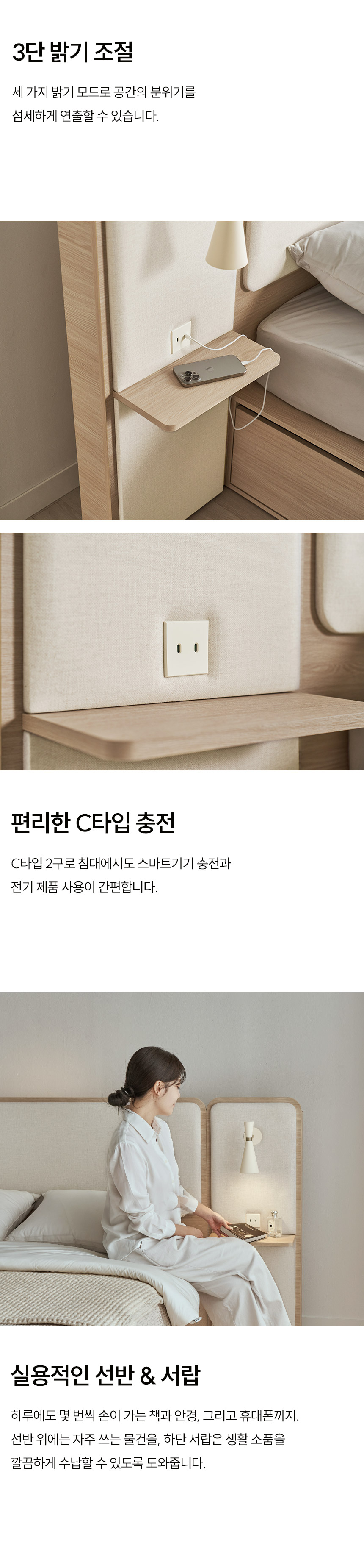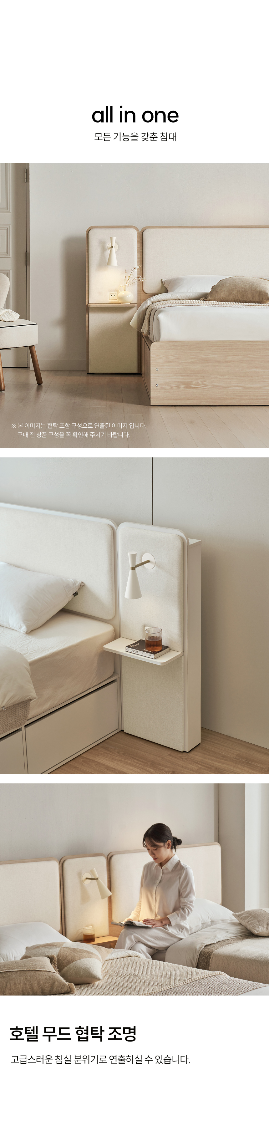 (현대Hmall)스칸디아디럭스 패브릭 쿠션형 호텔 침대 LED 협탁