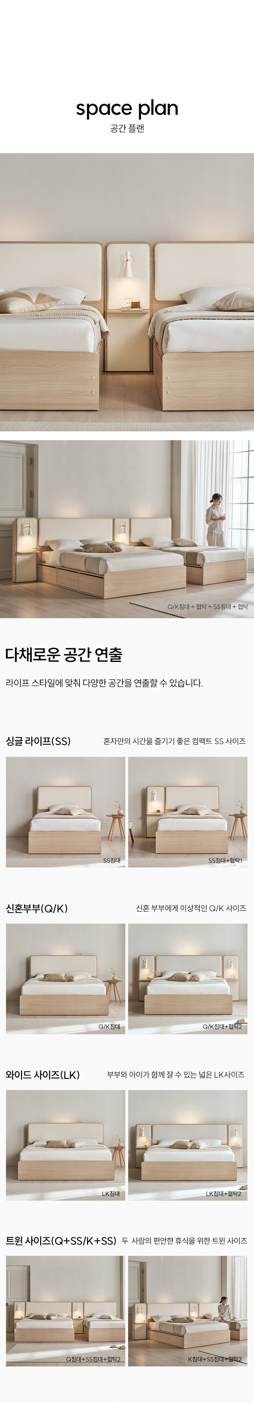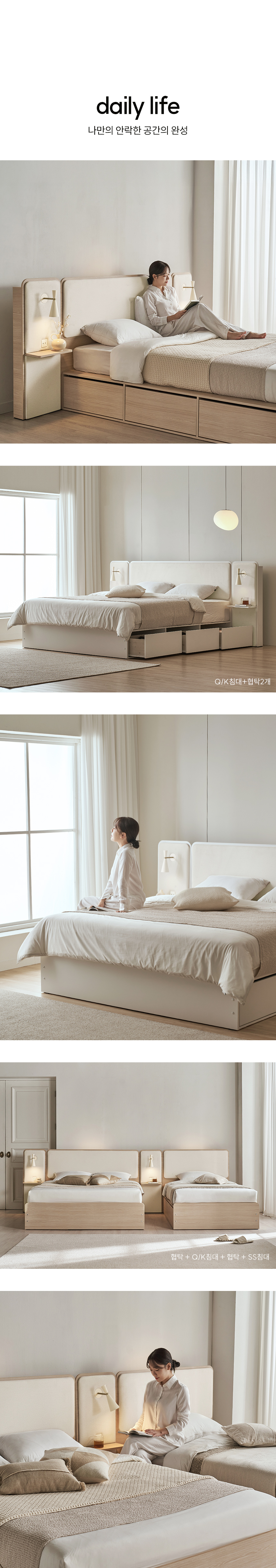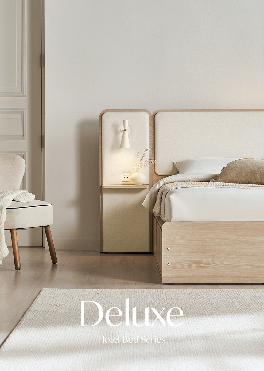 (현대Hmall)스칸디아디럭스 패브릭 쿠션형 호텔 침대 LED 협탁
