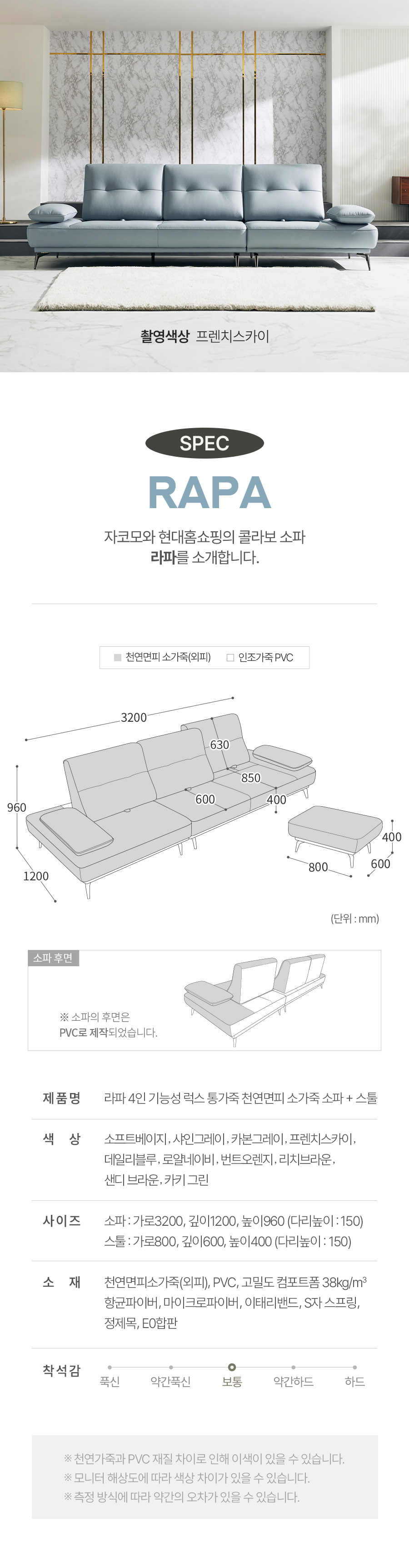 (현대Hmall)자코모 라파 스윙 4인 기.능성 럭스 통가죽 천연면피 소가죽 소파+스툴