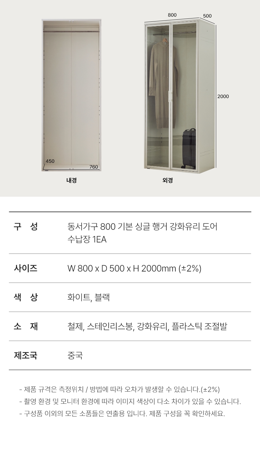 (현대Hmall)동서가구 블룸 드레스룸 800 싱글 행거형 기본 강화유리도어 수납장 DF926858