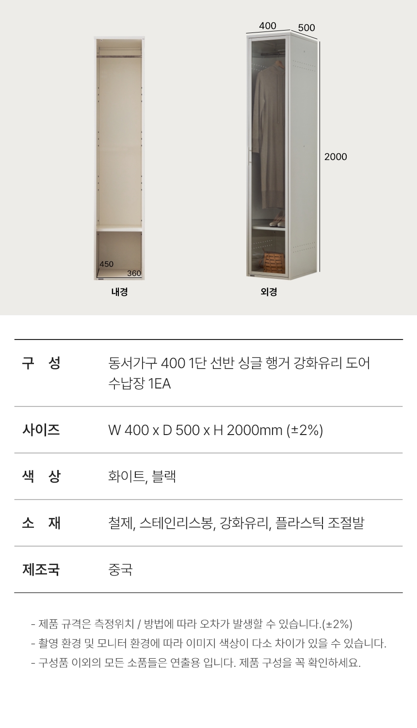(현대Hmall)동서가구 블룸 드레스룸 400 싱글 행거형 1단 강화유리도어 수납장 DF926853