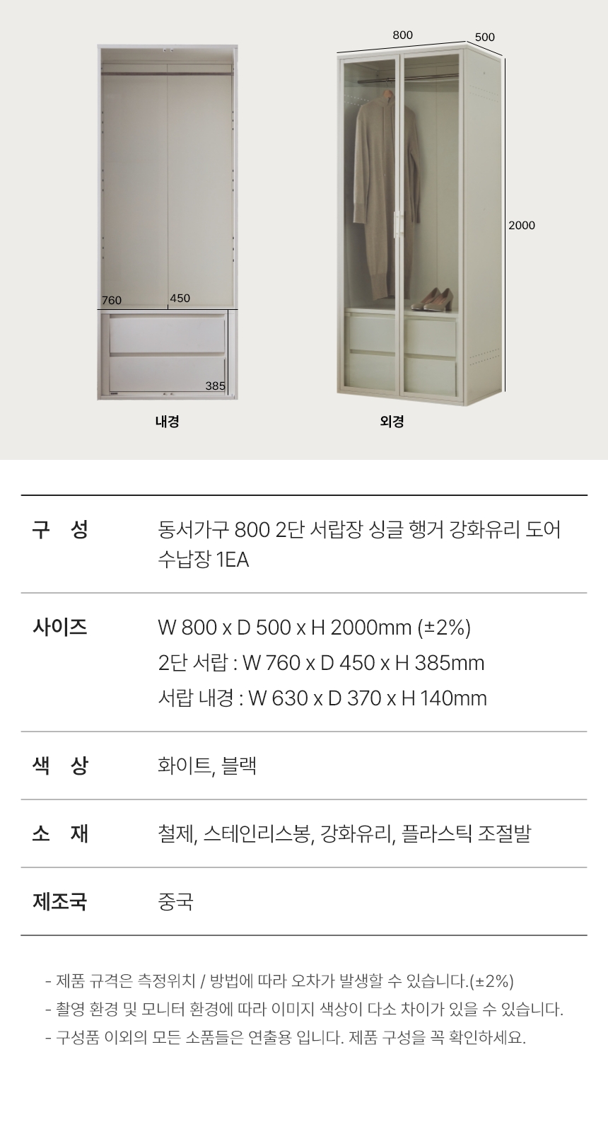 (현대Hmall)동서가구 블룸 드레스룸 800 싱글 행거형 2단 서랍장 DF926861
