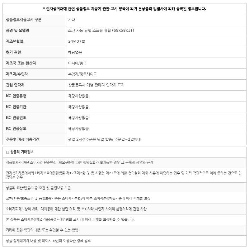 셀러허브 1 스텐 자동 닫힘 스프링 경첩 (68x58x1T)