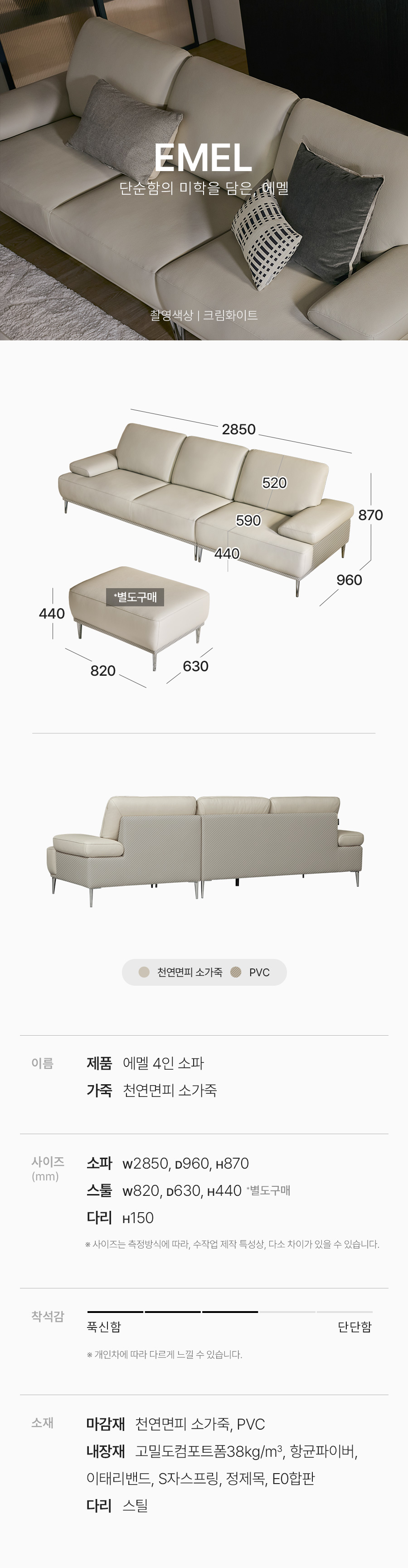 [신상혜택가][자코모] 에멜 4인 천연면피 소가죽 소파