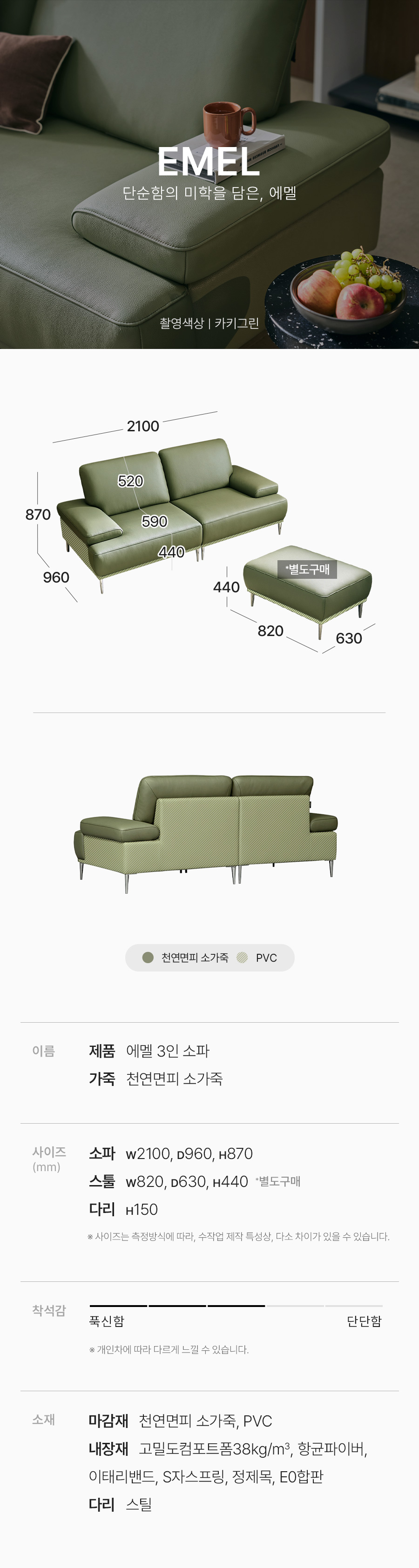 [신상혜택가][자코모] 에멜 3인 천연면피 소가죽 소파