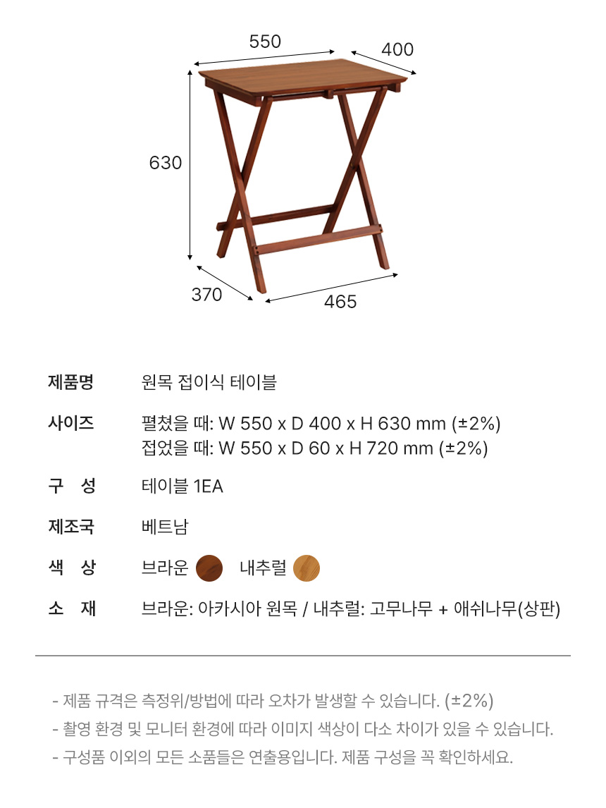 (현대Hmall)동서가구 모먼트 원목 브라운 접이식 테이블 DF927239