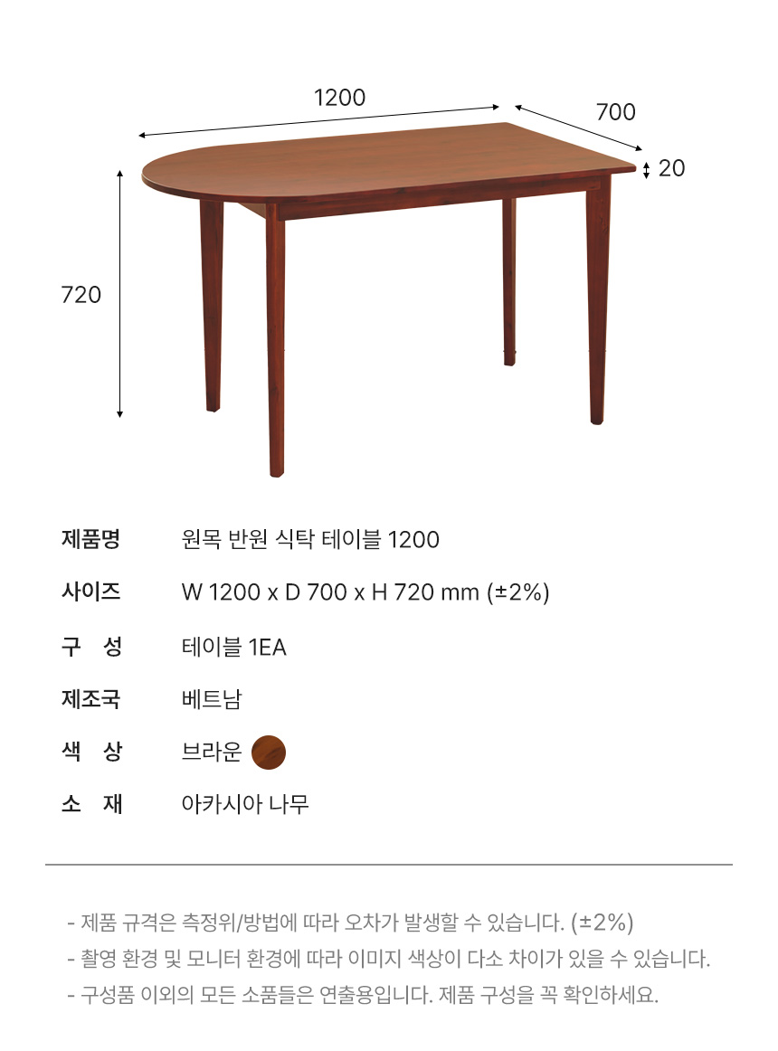 (현대Hmall)동서가구 모먼트 원목 반원 식탁 테이블 1200 DF927246