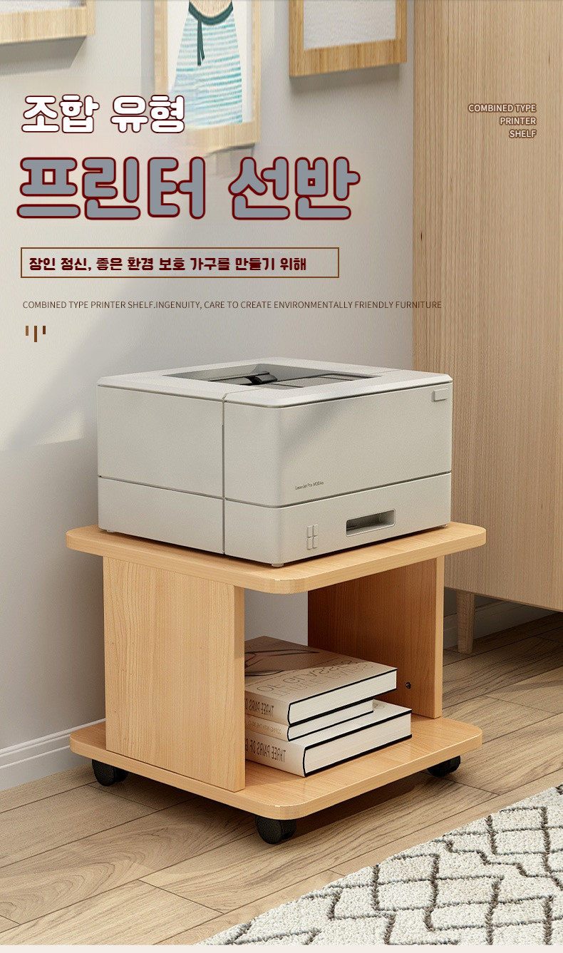 마일로 이동식 프린터 선반 복합기 프린트 받침대 다이-브라운-3